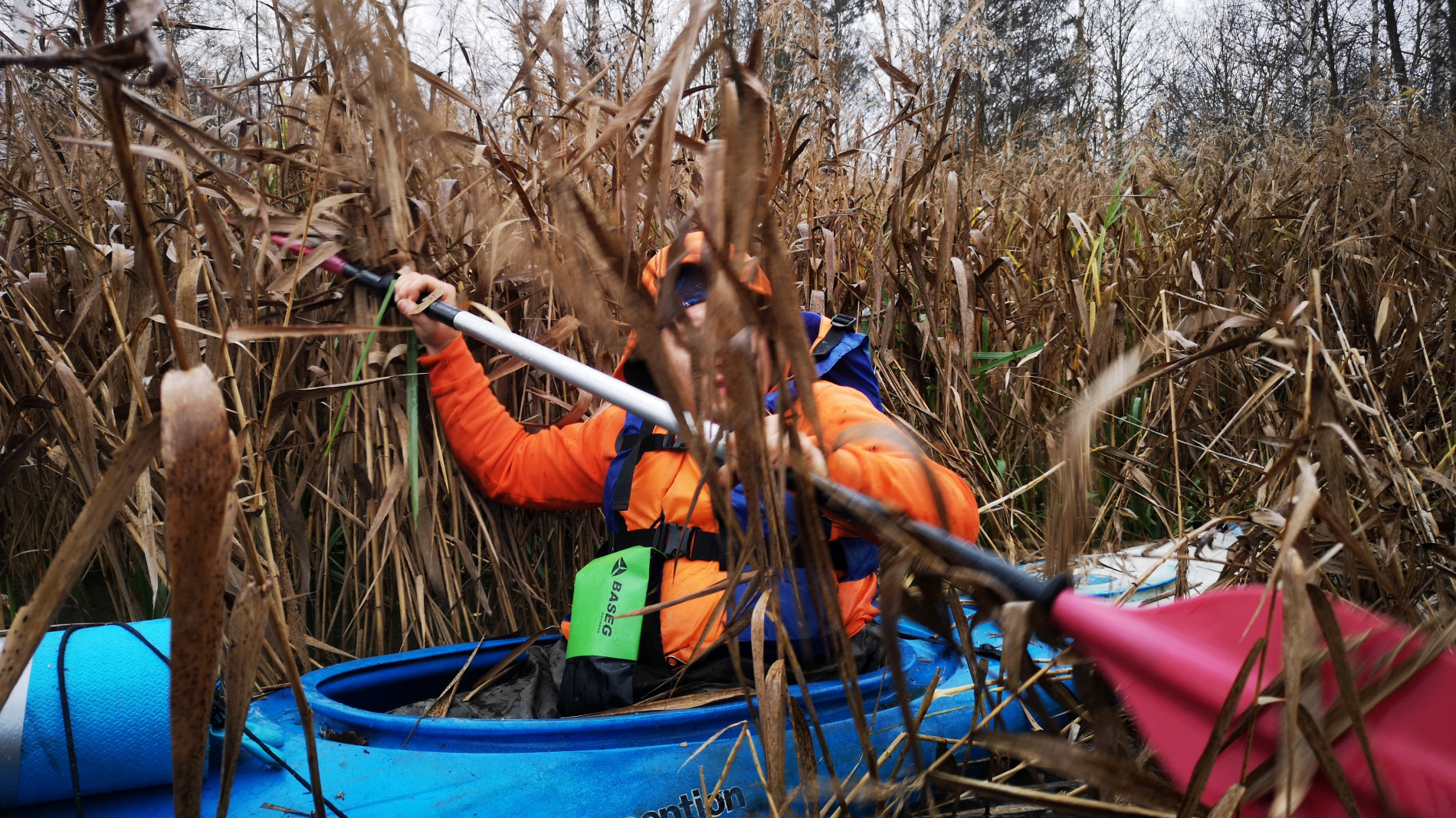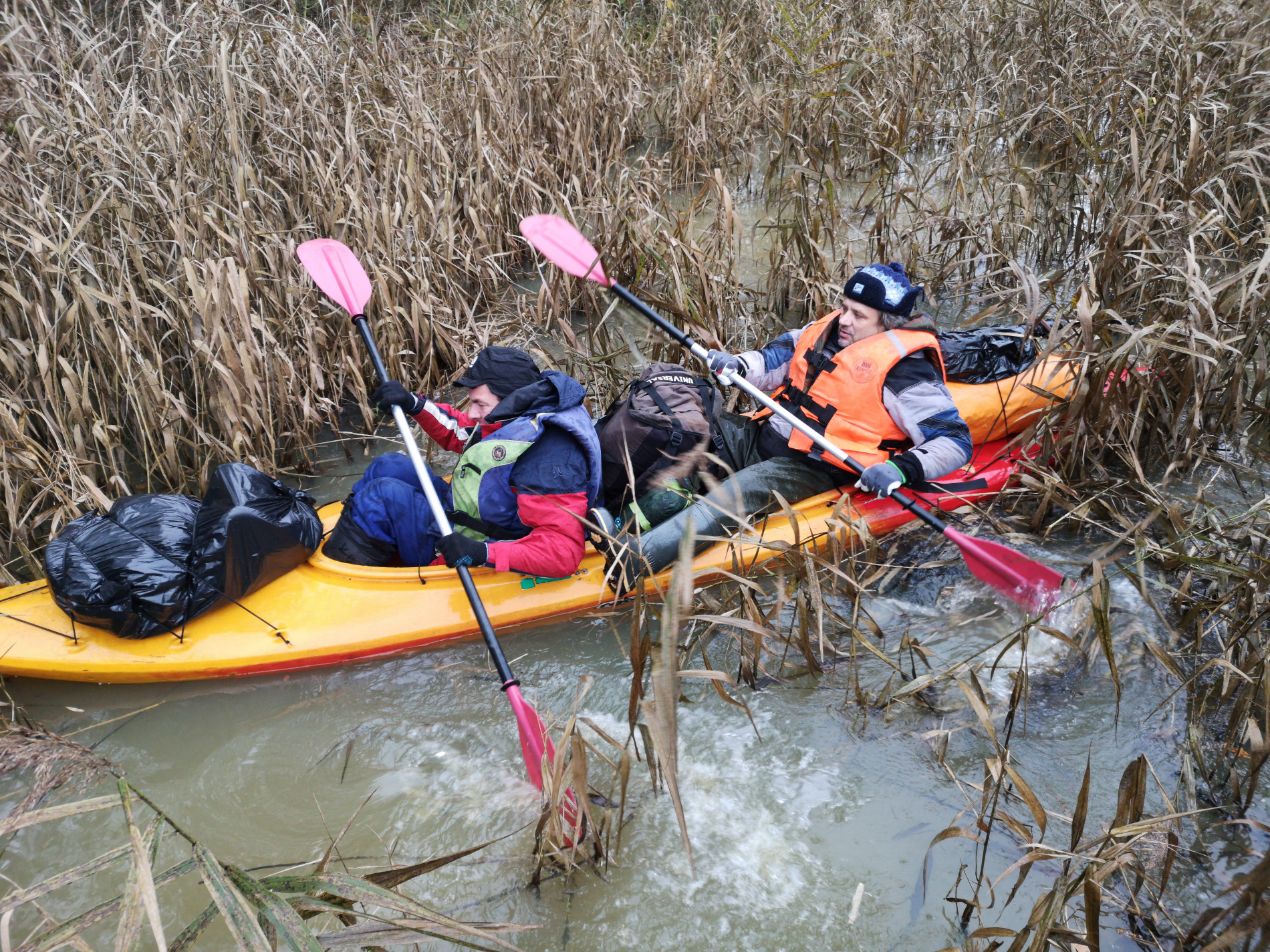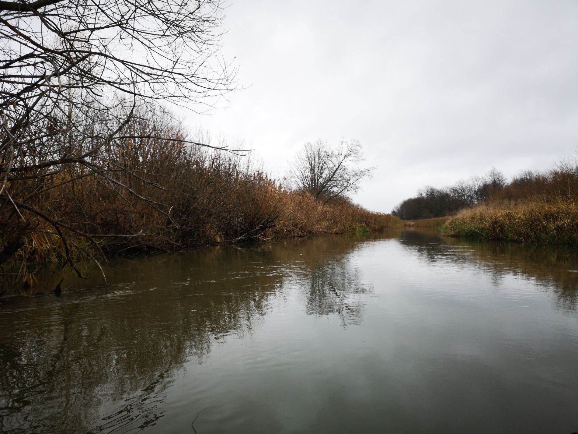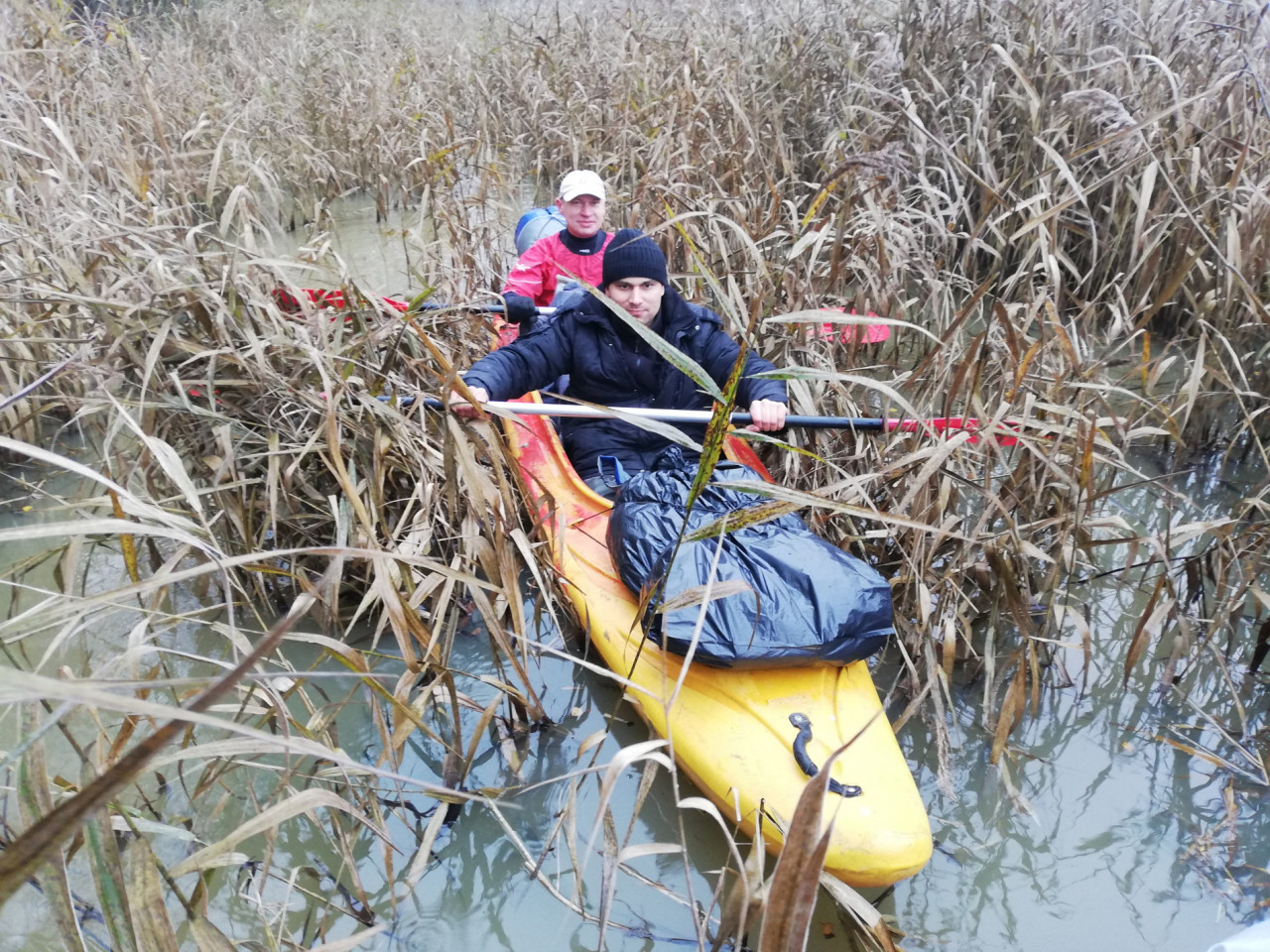 Хорошо ехалось по каналу, дружно и непринужденно. Он в непосредственной близости с погранполосой, но удивительным образом пограничников сегодня мы не интересовали. Снова и снова мы обносили завалы, или будь то проторивались сквозь засиливающий русло тростник. Как я уже сказал, прошло 4 часа. Сто пятьдесят метров прямого участка. Дальше расширение. Мы вошли в Словечну.