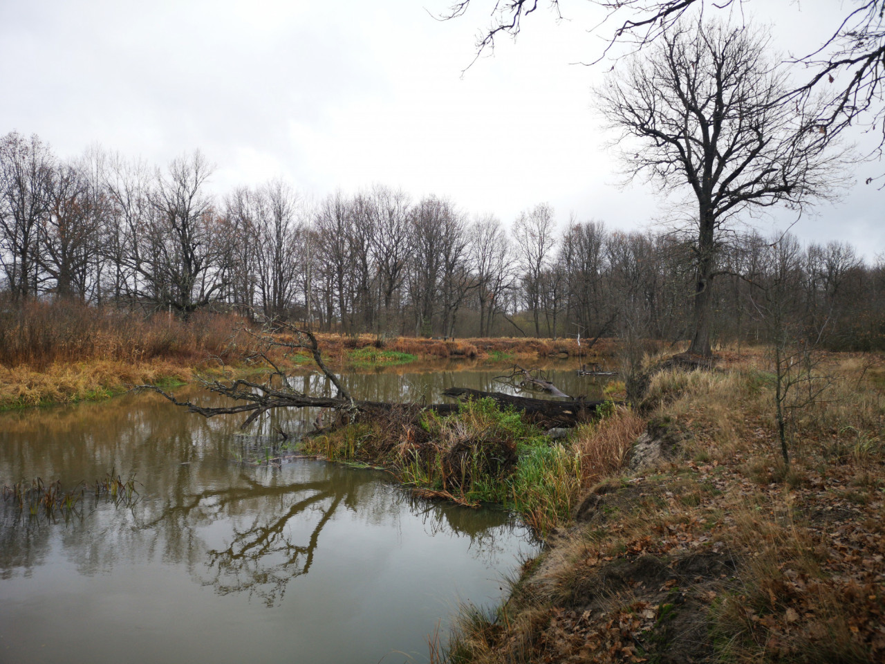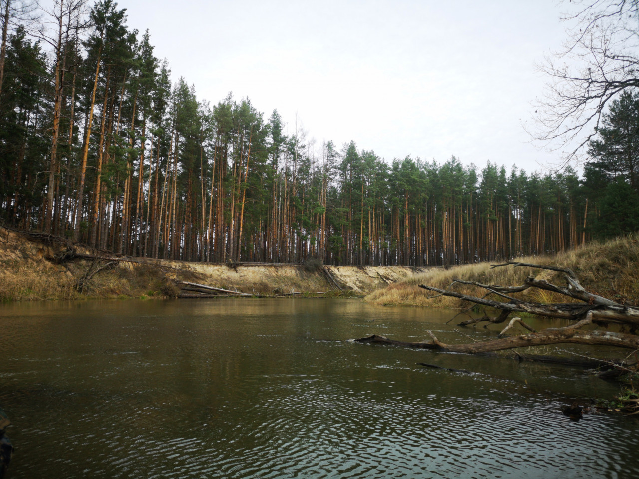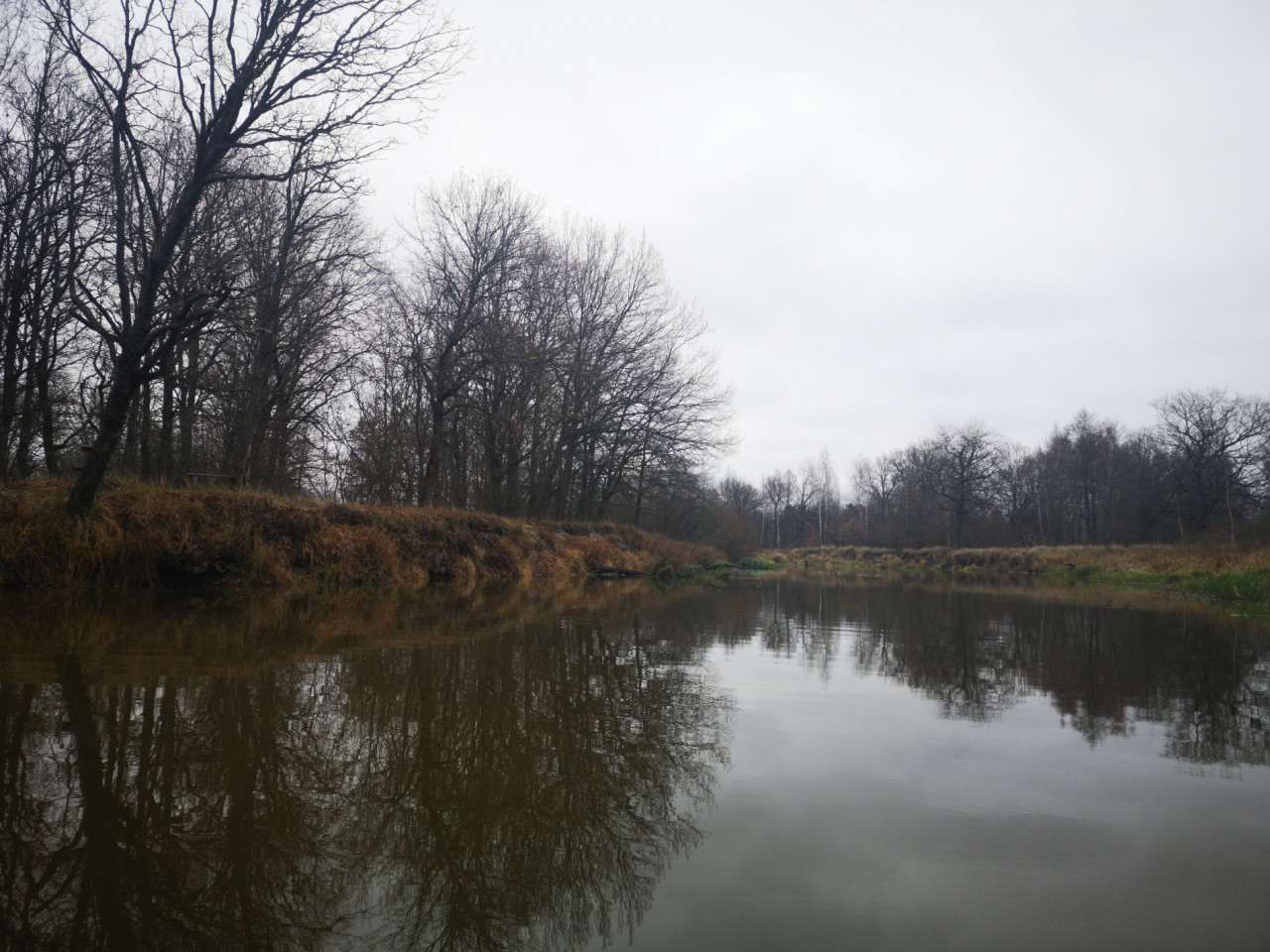 Погода была пасмурная, теплая и безветренная. Какое-то время участок реки был луговой. Атмосфера увядающего Полесья поздней осени была преисполнена мрачной торжественности.