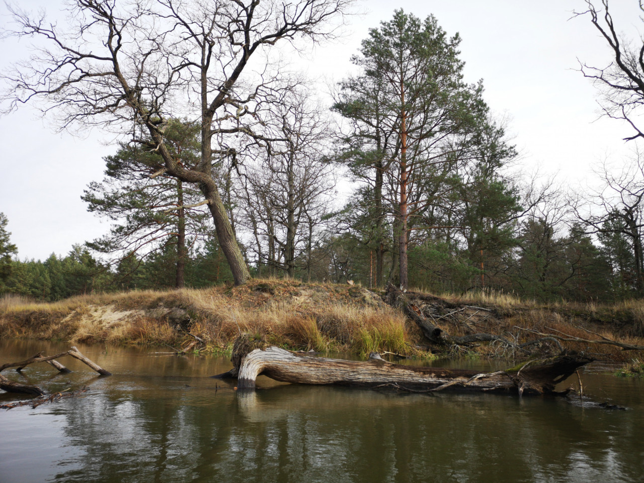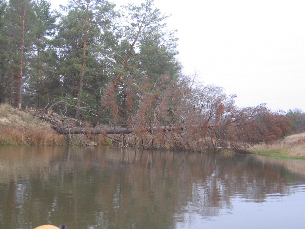 Постепенно река стала входить в леса. Она на время сделалась шире и с почти стоячей водой. Берега то и дело стали подниматься выше. Встречались сосняки. Постепенно русло стало ужиматься. А сосняки уступили место дубравам. Эти дубравы чем дальше, тем становились концентрированнее. И стало что-то не то. Заключительный участок реки подразумевался лесной. Он и был лесной. Как много за день можно, скажем, пройти по Ислочи или нахуй по Западной Березине. Воды тоже хватало теперь, чтобы успешно преодолевать расстояние, стремительно. Появились коряги. И что это – их все больше! Далее они заполонили все русло. Везде были эти коряги, целый частокол, заколы, стерня. В разных плоскостях. Иной раз они представляли собой хитроумнейшие сплетения. Траектория движения по руслу увеличилась вдвое за счет маневров. Через дубравы текут Случь и Уборть. В меньшей степени Ствига. Но не помню я нигде (а на Ствиге не было совсем воды), чтобы там было и пятой части того что здесь этих корчей. И все это сплошь мореный дуб. Не помог бы здесь даже Саша Пожиток со своей бензопилой (дуб пилится тяжело). Скорость наша упала до 1-2км в час. Движение сплошь превратилось в маневры.
