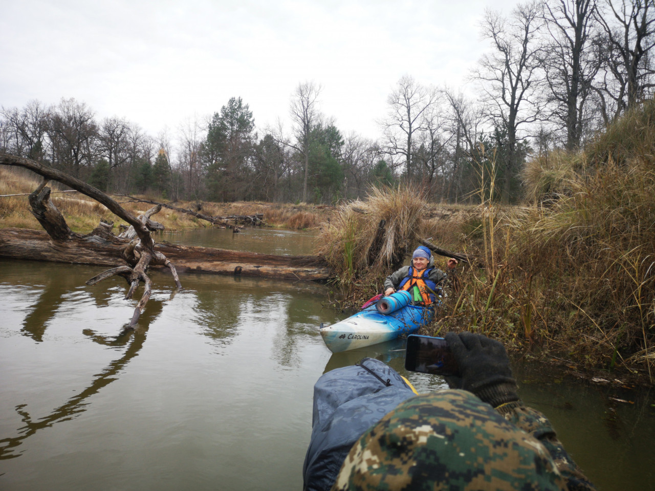 Горбатка восхищалась, что до сих пор в дубравах ездить большинству не доводилось. Сперва возникли отдельные разговоры повторить этот проект весной по более высокой воде в вегетативный сезон. Когда все зеленеет и воды по идее больше. С одной стороны это «Slovechna 2» и ее продолжение, но никак не выйдет с этими корягами завершение. За идею повторить уцепились и чем дальше, тем прочнее укоренялась сегодня эта мысль, что будем повторять и завершать. Потому что до границы с заповедником все-таки остаются ещё 12 километров. По такому же дубовому лесу. Где каждый поворот русла как памятник природы. Да и от этих 12 километров Глаз оказался сегодня еще и по той причине, что поезд на Минск все-таки в 17. А других не было. А нужно еще время, чтобы добраться до Калинковичей.