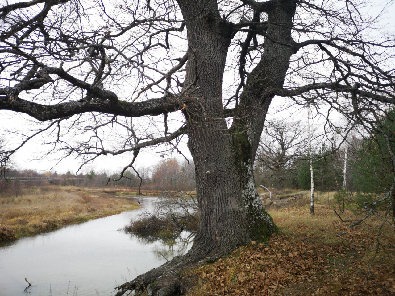Ехали кучно, дружно и весело. По руслу Словечны еще прошли более пяти километров. После моста остановились передохнуть-перекусить возле могучего дуба с выгоревшей сердцевиной. К перекусу полагался еще коньяк. Было не по-ноябрьски тепло, весело и атмосферно.