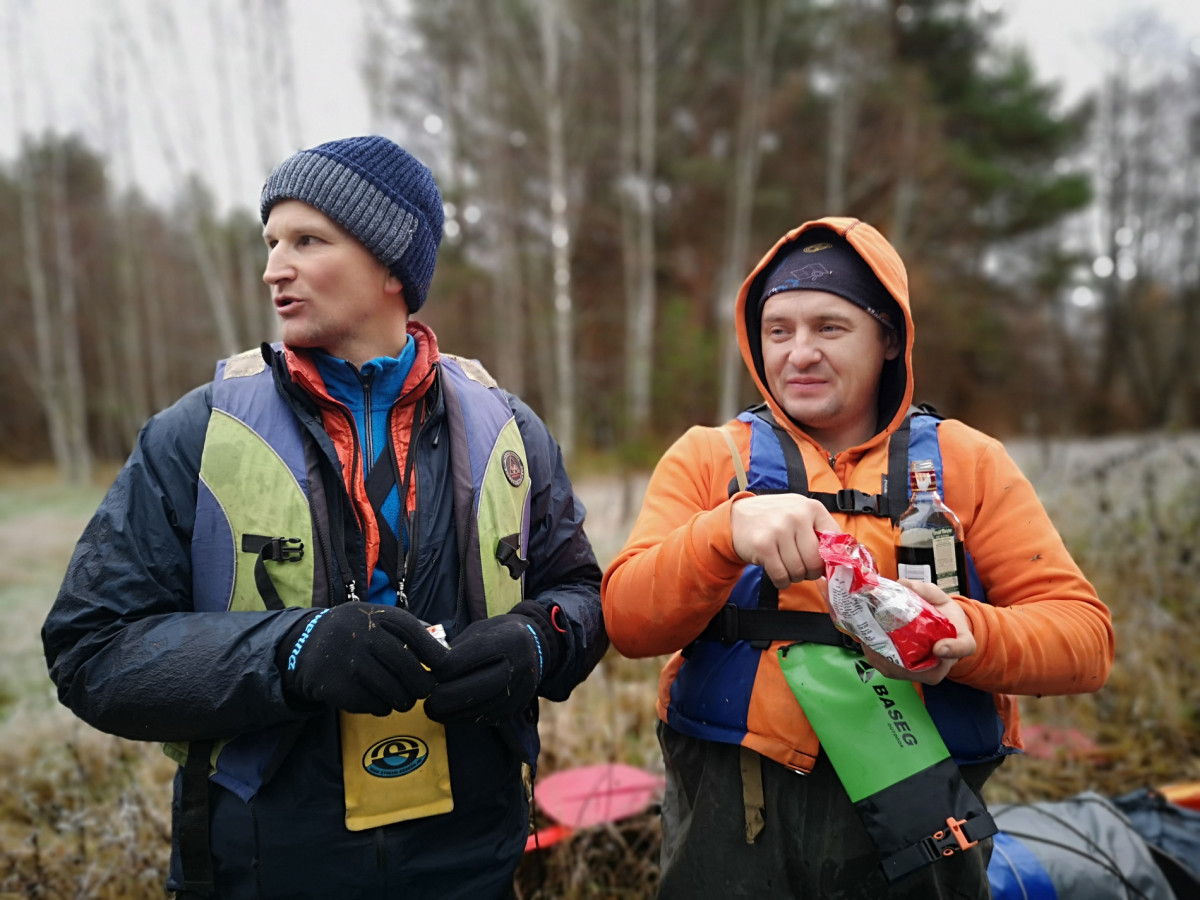 Для себя я давно и, причем, интуитивно даже серые будни перевел в категорию развлечений. С возрастом единомышленников на дебильные проекты находить становится все тяжелее. Но они находятся. Этот ПВД на Словечну имел не выгодные отрицательные бонусы. Ехать в ночь, ехать далеко, ноябрь месяц, разгар эпидемии короновируса, так еще и радиация шкалит. В группу собралось 11 участников. У Глаза нашелся и интерн, который имел нужный опель с фаркопом (наличие фаркопа очень ценится). Вчетвером мы поехали на опеле, предварительно зацепив прицеп с байдарками. Семеро на поезде до станции Калинковичи. Старшим назначили очень бдительного Виталия Спиридонова. Добросовестного и скрупулезного.