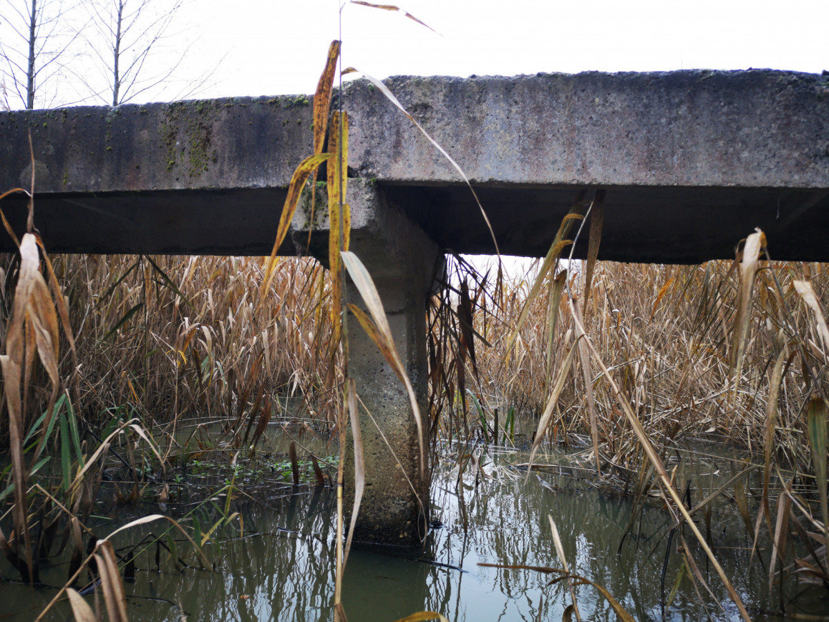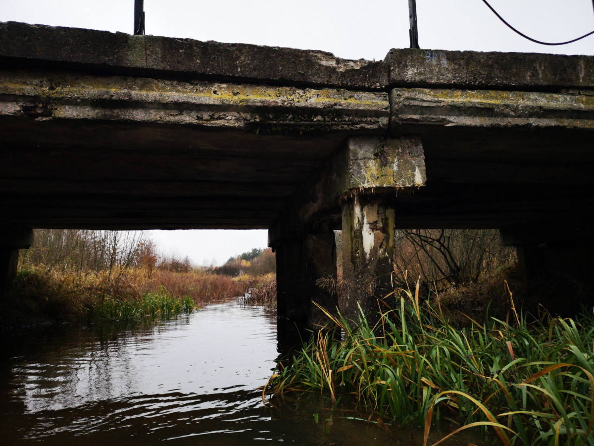 Классический старый мост дороги местного значения с посеревшим бетоном, местами облюбованном неприхотливым лишайником. Классический антистапель под мостом. А сколько их таких было. Дружно мы поносили вещи. Горбатка уехала в Калинковичи. Поездюки под руководством собранного и внимательного Виталия Спиридонова, чтобы сесть на поезд.