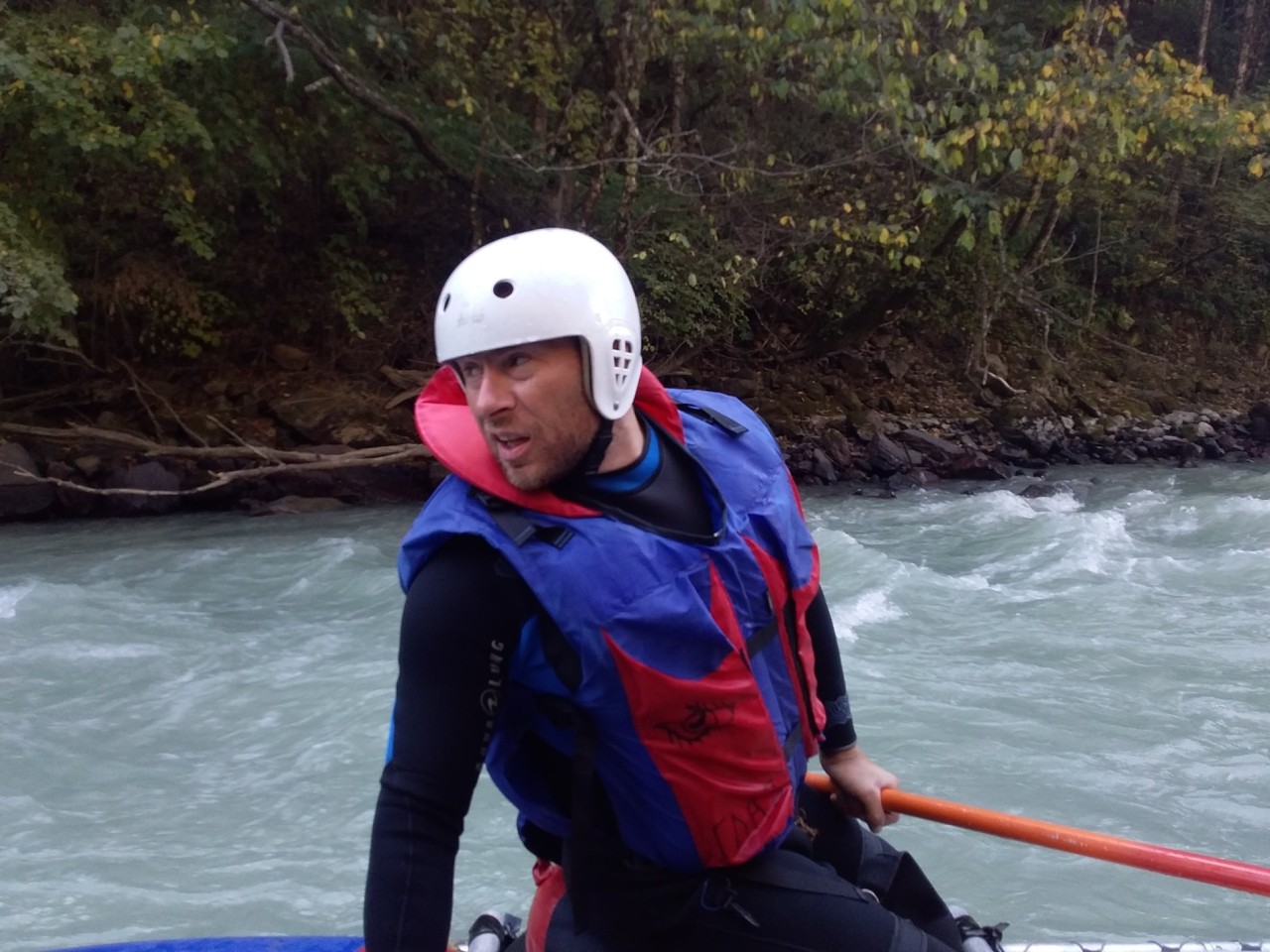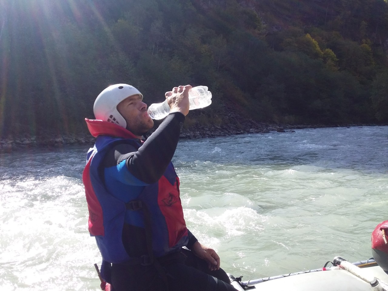 Третий день тоже спускались по Аксауту. Олег Соловьев выдал мне на Рунтю наперед двух ленивых гребцов из клуба «Кому за 118килограмм». А сзади, значит, это – мы с Горбиковым. Роман Монахов и Падрэ Адриан подленивались. Вывернуть в критический момент их задним было весьма тяжело. В нужном месте маневр передних был пропущен. На сильном быстротоке удар в камень пришелся в раму.