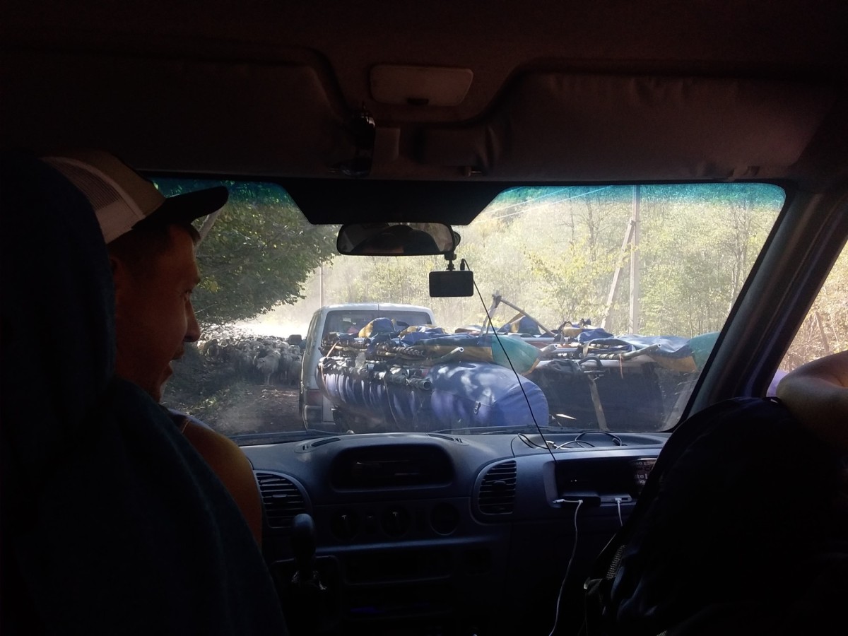 Шли по Теберде мы разные участки, некоторые дублирующийся. Возвращались в лагерь на бусе. Забирал нас Руся. Поперек прицепа уложили три доски. На них ставили в три этажа катамараны. Их слегка подспускали и ужимали стропами. В Лагере за коменданта и смотрящего как правило оставался Француз. Связь здесь ловится хорошо. Ужин обычно согласовывали. Первые дни в походе нет у меня аппетита. Просто не ем и всё. На этот раз группа изнасиловала едой до содрогания. Нужно в последующем имитировать, что ем и еду просто выбрасывать.