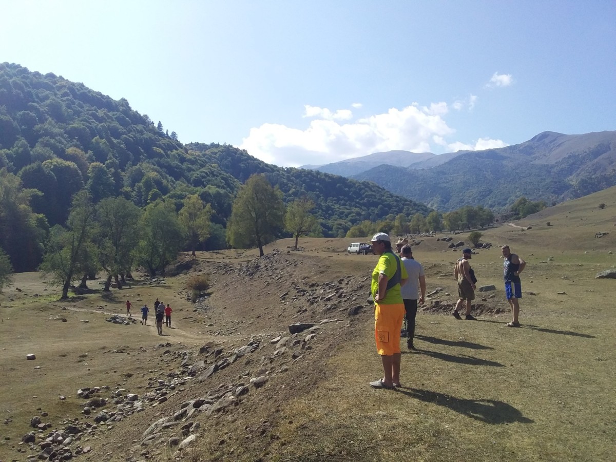 После обеда в лагерь пришел коренастый Кавказец. Зовут Казбек. А лет ему сколько? 38. Пришел на одной лошади, с собой привел ещё три. Предложил прогулку вверх к каким-то озерам. Только это далеко. Если возвращаться, так не ранее, чем утром. Трое смельчаков согласились. Милый Дедушка Носов, Таня Минкевич, да Леша Райченок. Что по деньгам, так горец говорил, что ничего не надо. Но так на Кавказе не бывает. Любой пастух, да и не только пастухи, всегда хотят денег. Разумеется, денег дали. Вернулись наши всадники следующим утром. Весьма и весьма довольные. Но сделалось уже очевидно, что этого горца мы теперь никуда не спровадим. Во всех фолиантах, путеводителях и альманахах прописано, что с местными на Кавказе бухать нельзя. Казбек быстро прижился, после уже не очень интересовался своим стадом. Еще после уже с удовольствием с нами побухивал. Этого я не видел, но мне рассказывали. С виду миролюбивую лошадь решил оседлать грузный Олег Соловьев. Он поставил ногу в стремя. Приподнялся и даже почти её оседлал. Лошадь неожиданно понеслась. Раздался увесистый шлепок оземь. Упавший всадник поднял столб пыли…