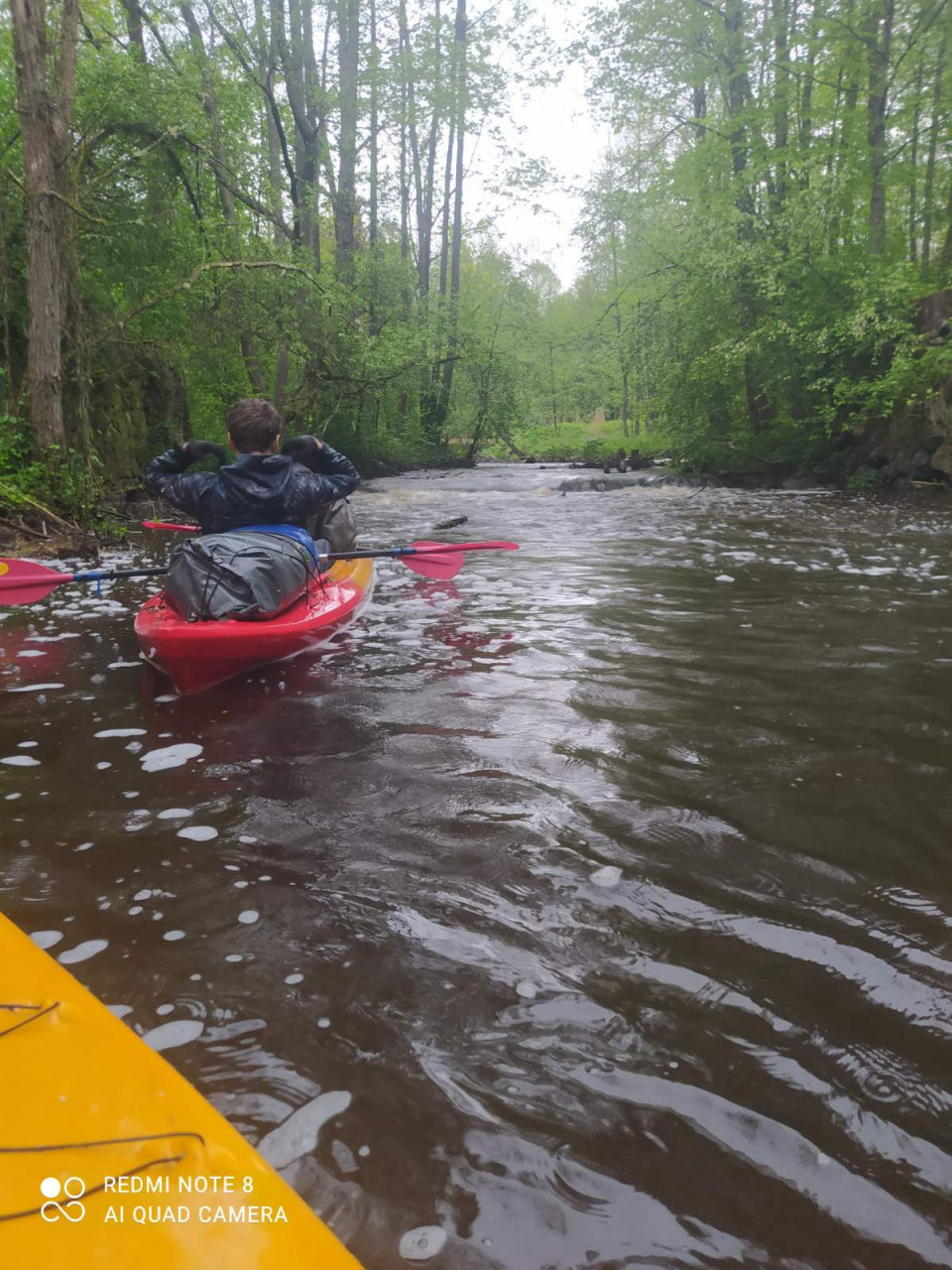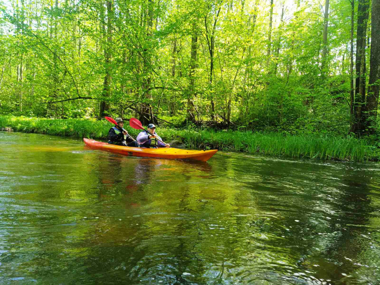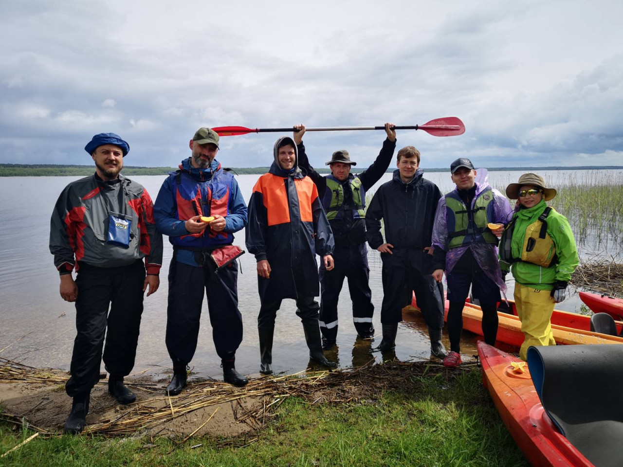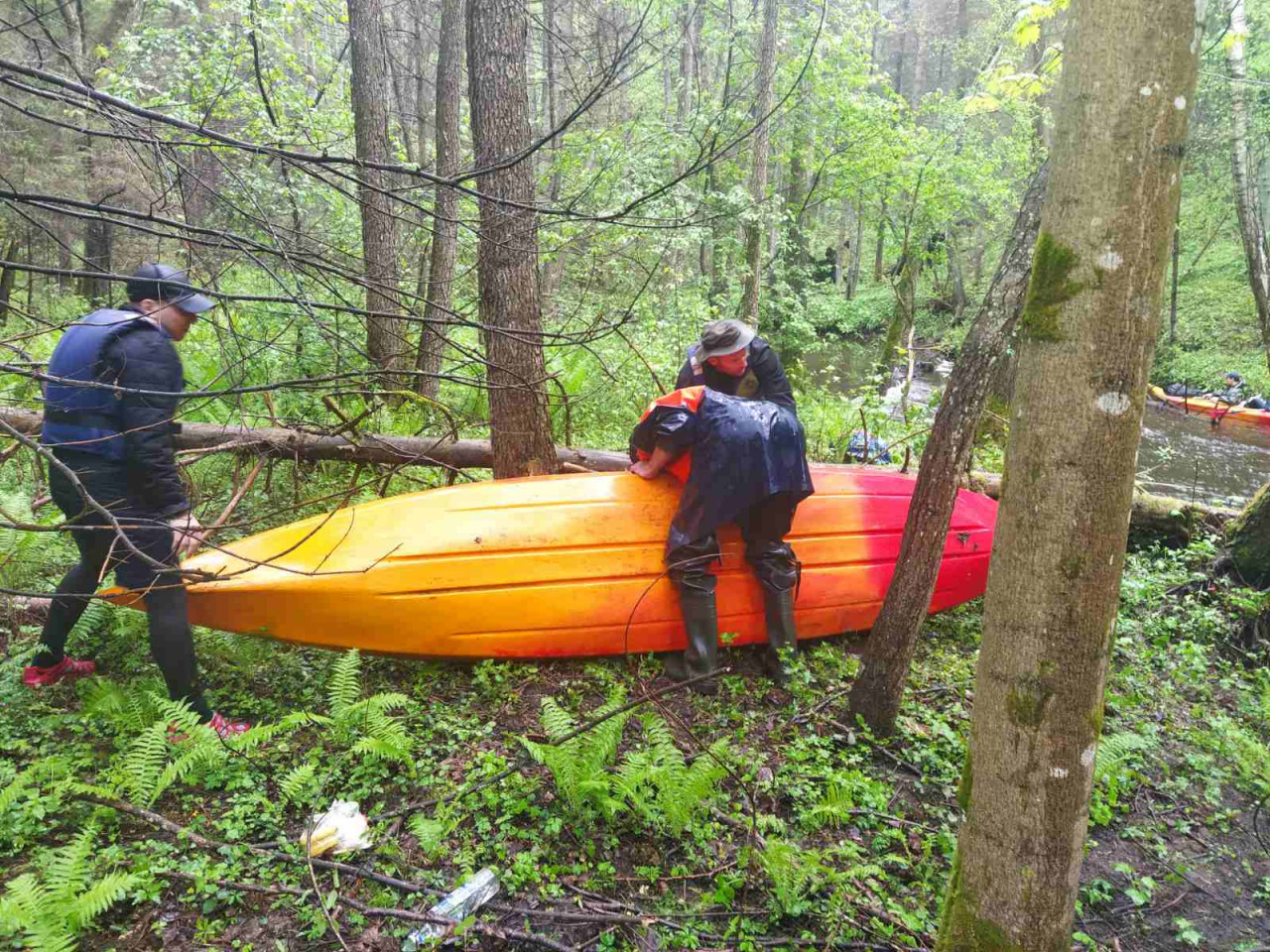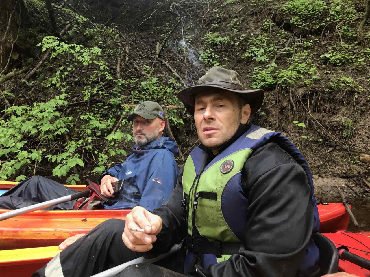 И завалы тоже встречались. Не расслабишься, все время нужно быть начеку. Из-за каждого поворота выбегает какая-нибудь очередная водная структура. И нужно успеть её прочесть. Часто экипажи причаливали, чтобы вылить из байдарок воду. Плотная и сочная травянистая растительность к концу мая поднялась на берегах. Низко над водой свисали ветки. Приходилось пригибаться или вовсе от них энергично отгребать.