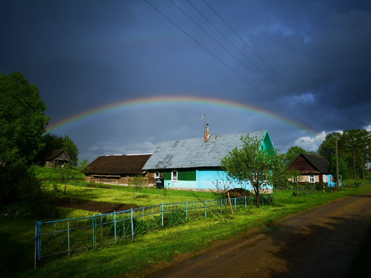 Свирянка резко и неожиданно влилась в Страчу, когда солнце стало клонится к закату. По Страче прошли не много. Глаз хотел идти дальше, дабы набрать в актив километража. Страча со своим уверенным упругим потоком позволяла это сделать быстро. Но возможность сойти с маршрута дальше была не скоро. Ближайшая деревня с ласковым сентиментальным названием Олешки. В ней и зачалили. После обильного недолгого дождя воссияла радуга. Да такая могучая, что ее дуга была полная. Она сплошным полукольцом с двух сторон упиралась в землю. Прям окрасились листья дерева, перед которым она спускалась ниц. Даже спустя какое-то время образовалось две радуги. Вторая, была более дальняя и тусклая.