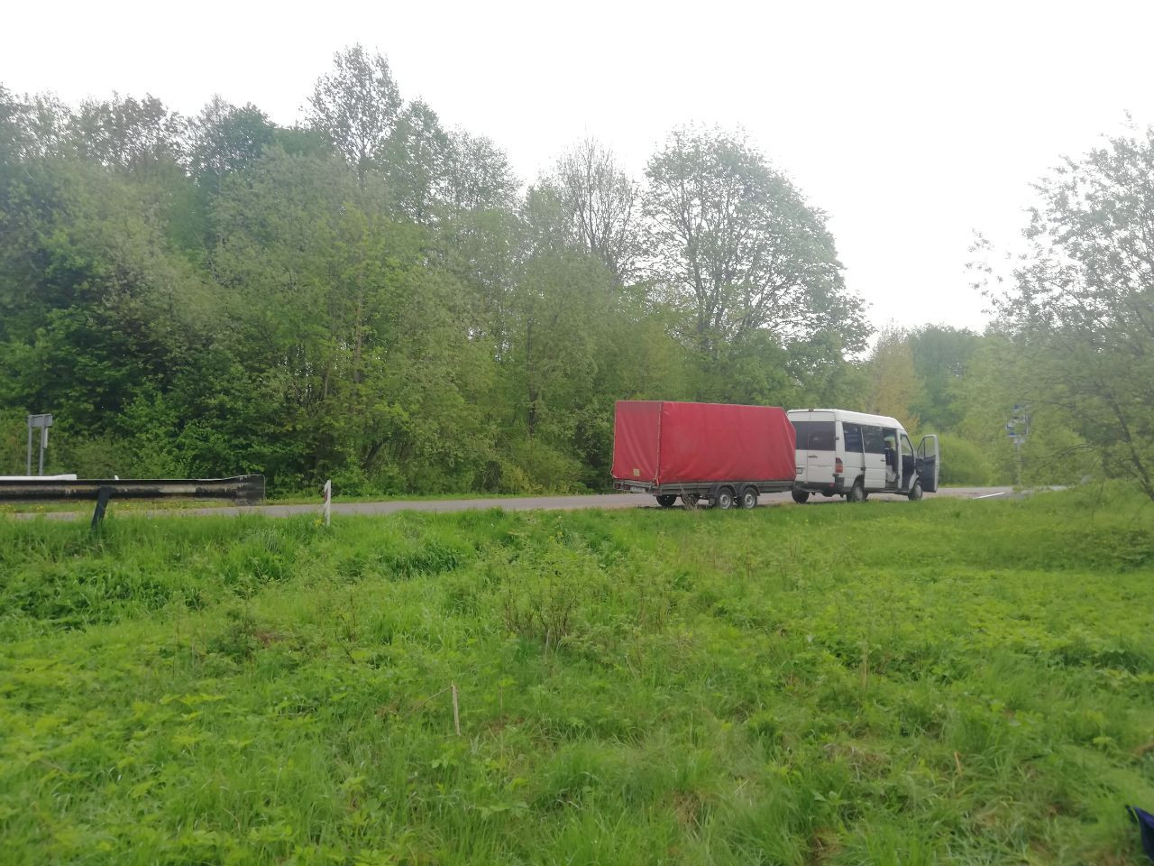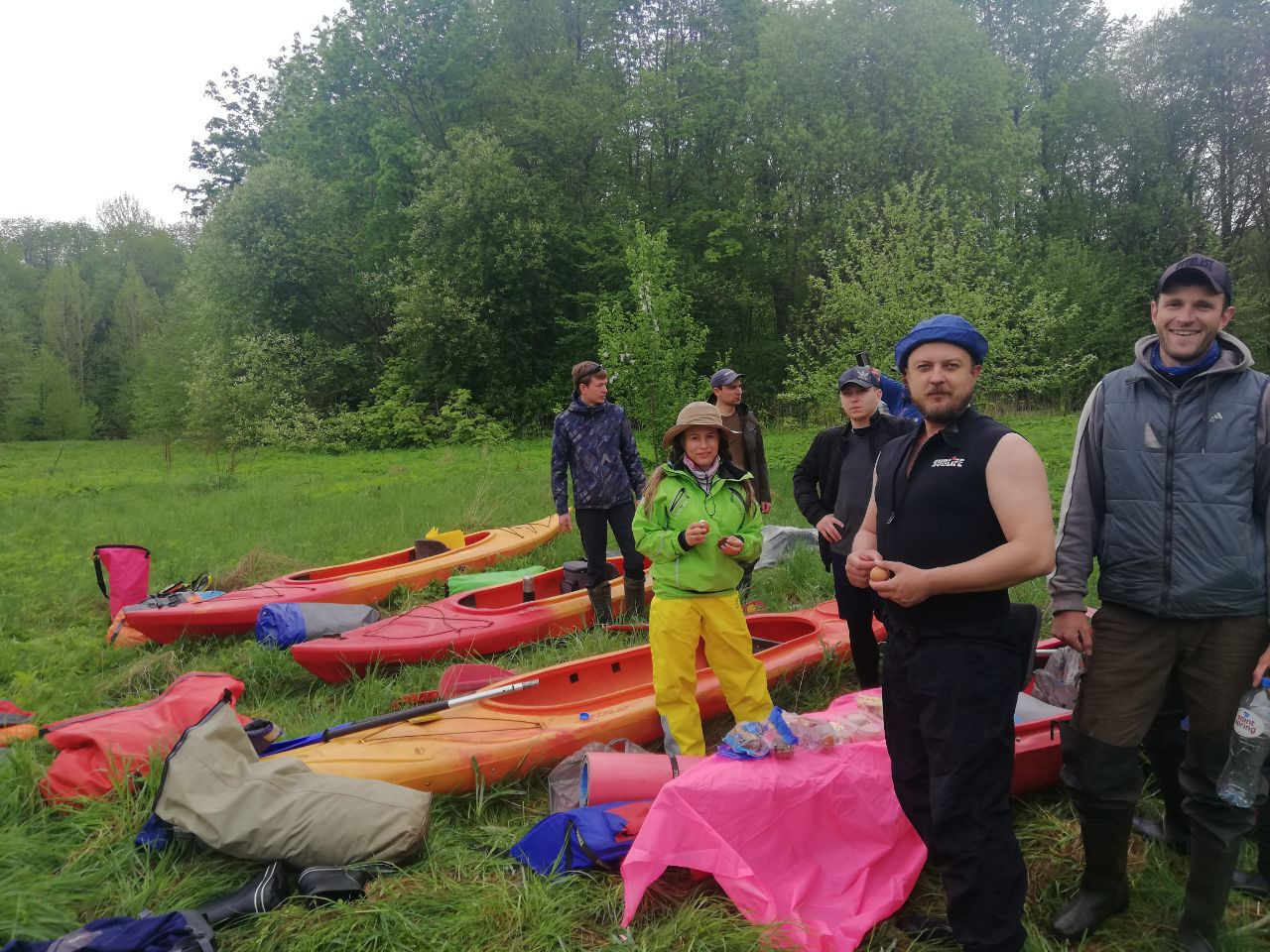 Лодки вытащили на росистую, уже высокую, молодую траву. Завтрак расположили на розовой скатерти. С северо-востока приволокло насыщенно темную сизую тучу, заморосил дождь. Бус Басков оставил во дворе домика в зарослях, предварительно согласовав стоянку с кем-то из местных.
