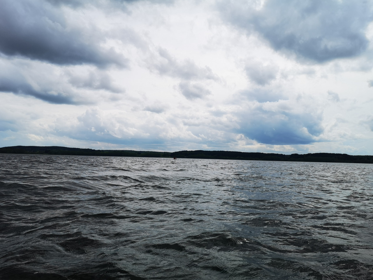 Преодолели вторую половину озера. Сегодня ветер встречно-косой (бейдевинд), и волны, казалось, выше. С ветром приходилось если не сражаться, то бороться. Глазов слабосильный напарник Саша – лаборант из компьютерной томографии, - в общий вектор движения привносил до 30 процентов работы. Глаз незлобно его журил.