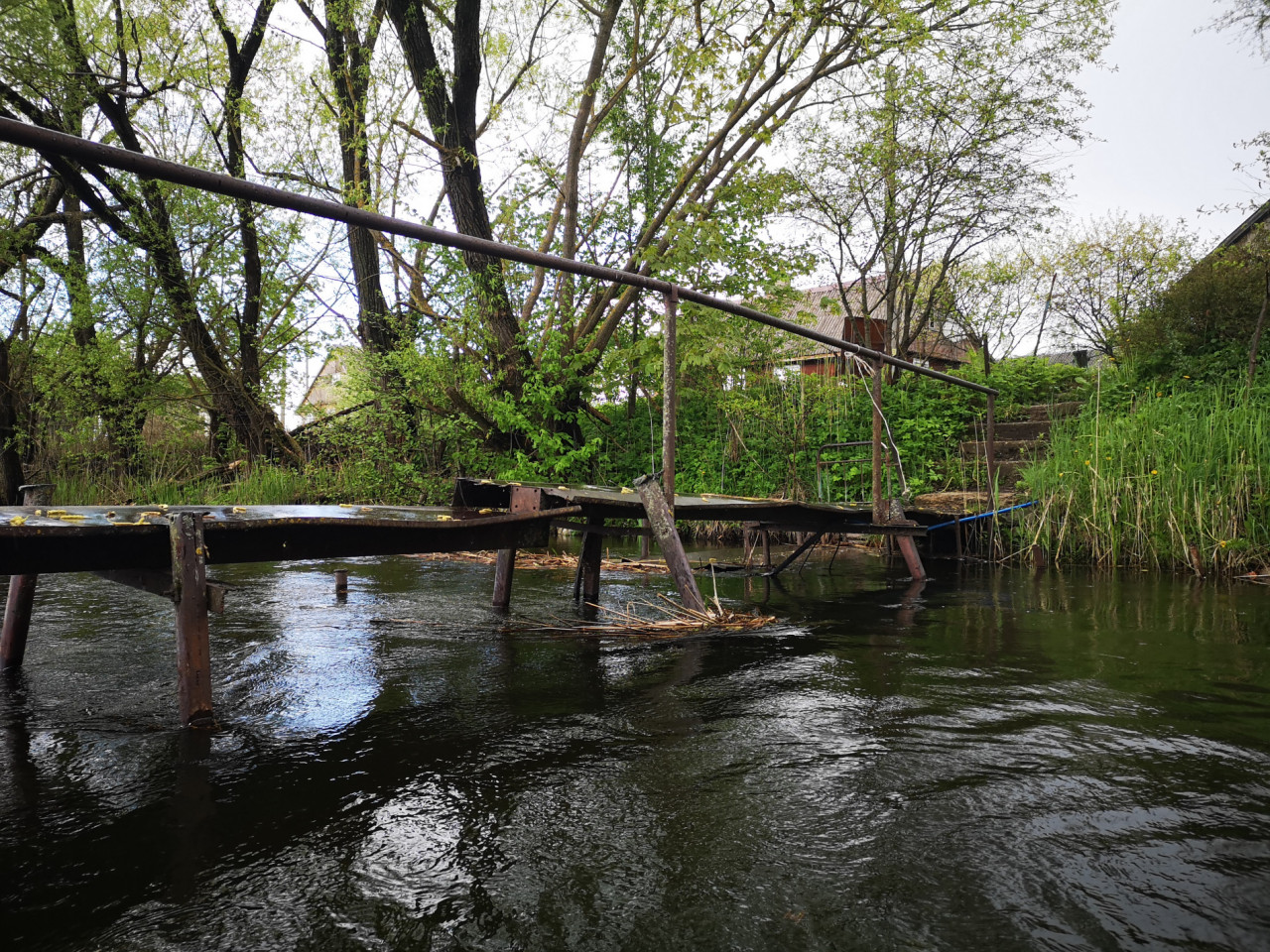 Стапель наш под мостом возле перекрестка с какими-то знаменитыми развалинами. На карте обозначены как Костел Божьей Матери Неустанной Помощи. На реке плотина. До плотины русло представляет собой ровный, спокойный канал. Называется Перекоп. После плотины Перекоп густо обступает лесная растительность. И сразу видны уже с моста поваленные в реку деревья. Воды, судя по всему, действительно много.