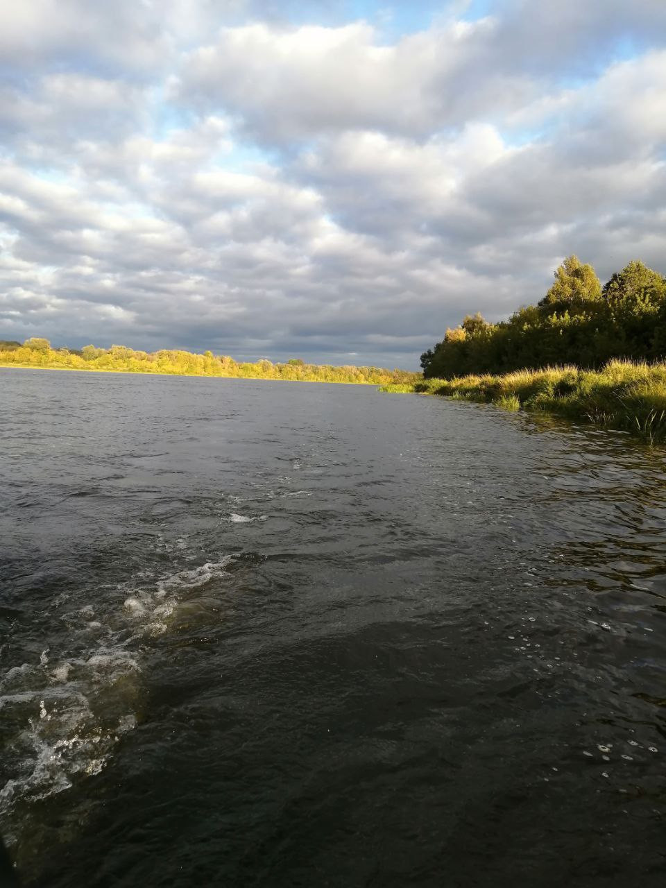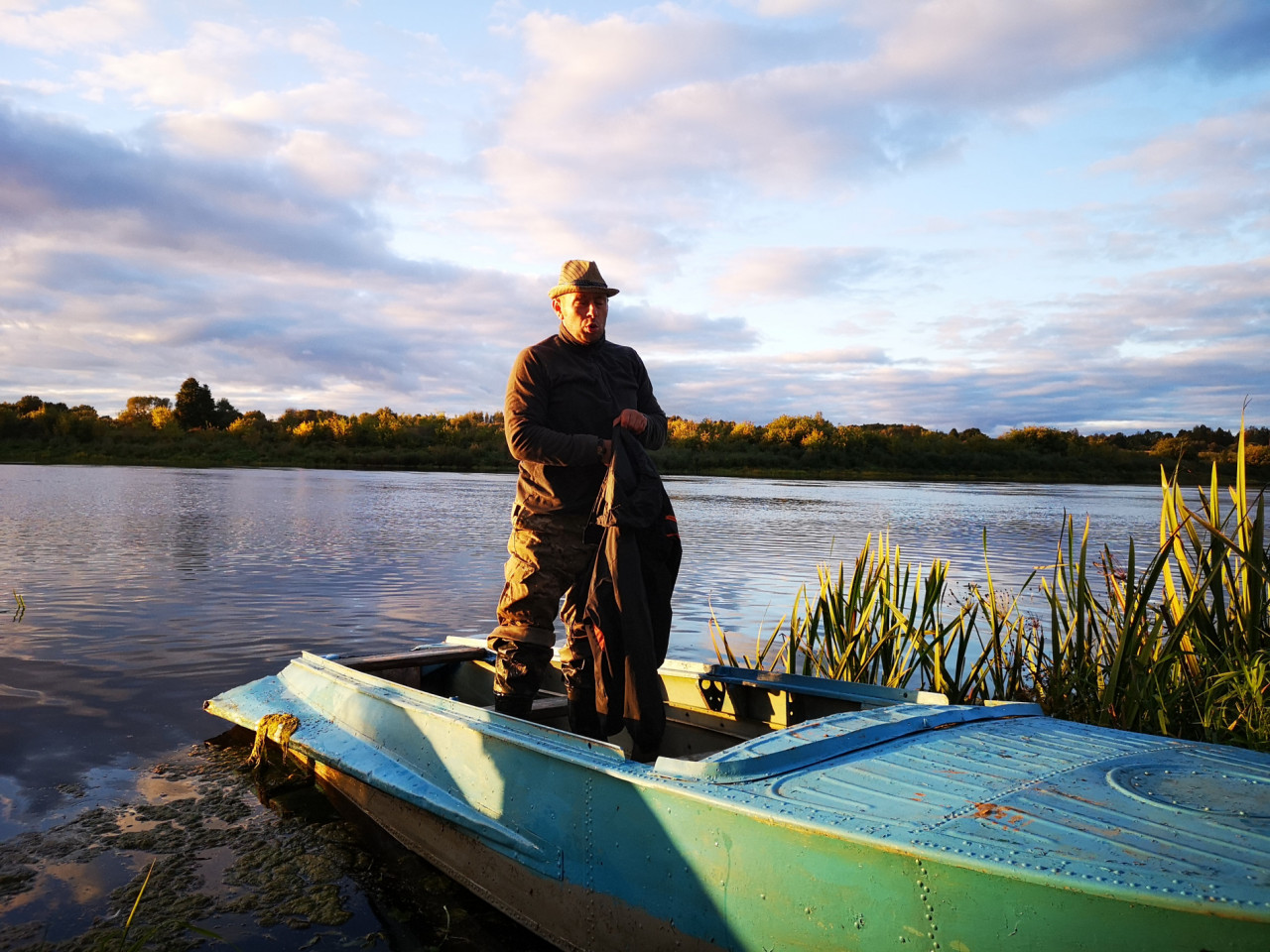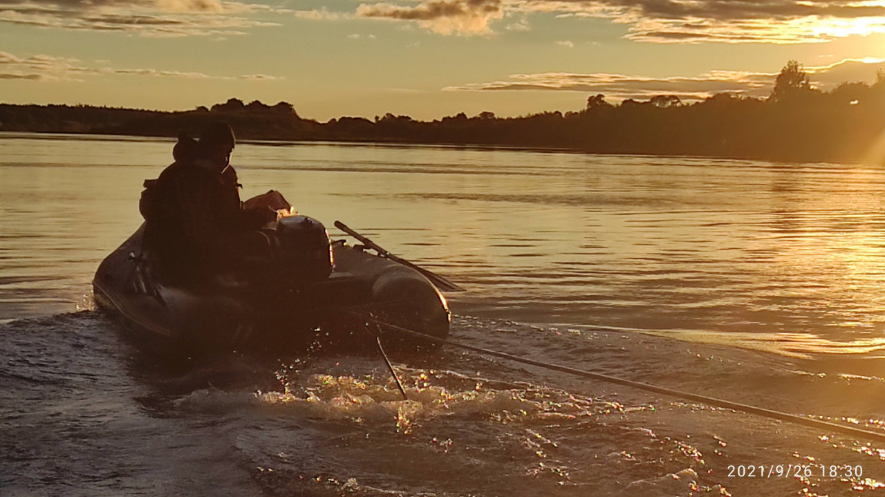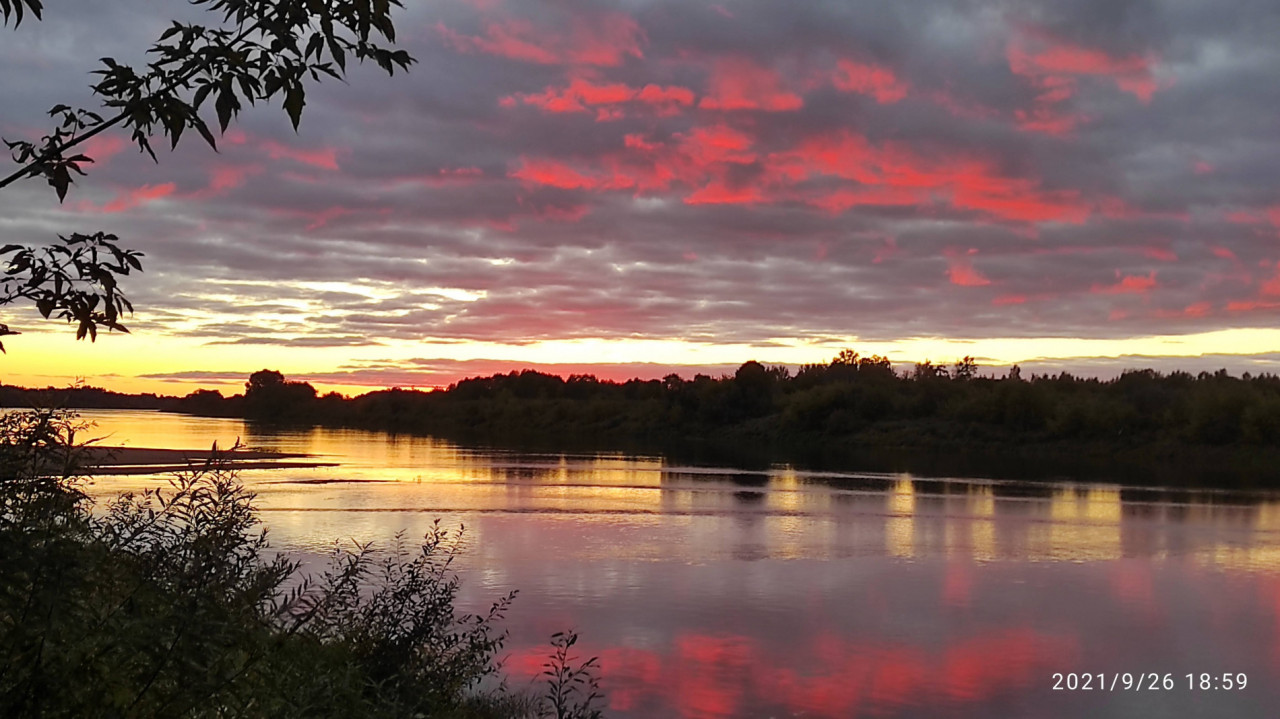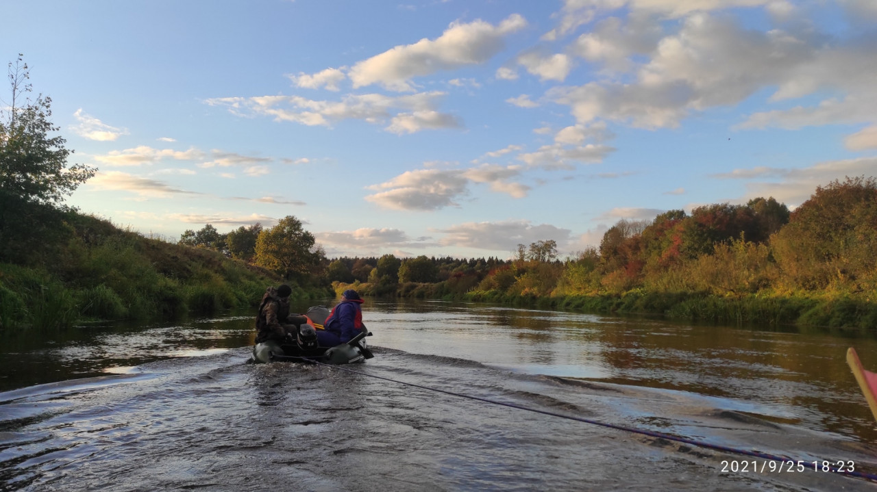 В первый день небо грозно и низко довлело. Зато воскресенье подарило нам шикарную погоду. Особенно красив был сногсшибательный вечер и закат в воскресенье 26 сентября. Заходящее над границей с Латвией солнце окрашивало речной пейзаж над почти прямым руслом реки в самые причудливые цвета. От желтого и оранжевого до розового с переходом в багровый и сизый.