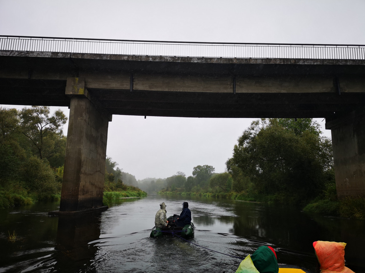 Зашнуровали и надули рафты, лодки. Смычку на нужном мосту Глаз организовал столь эффективно, что ожидать приехавшим с ним в субботу пришлось может каких минут 15, как из-за плавного поворота реки с ворчанием выползла моторная лодка, а за нею огромный пузатый рафт. Сплотка зачалила. Но довольно скоро пришла и вторая.