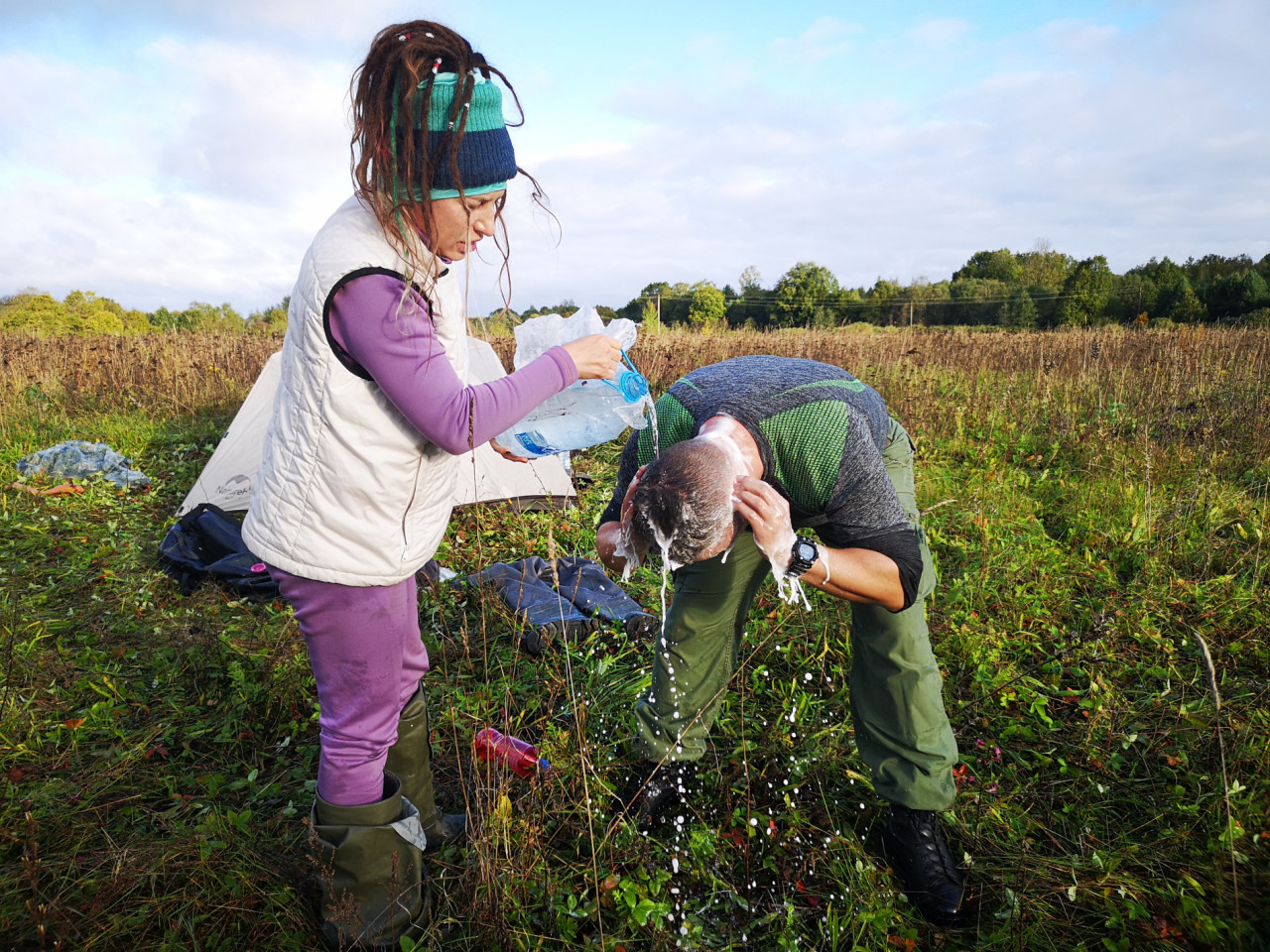 Флот зачалил, как и планировалось на 88-ом километре пути против деревни Леонполь. До границы осталось 4 км. Непростые межгосударственные отношения сложились у нас на тот момент с прибалтийскими соседями. Но среди нас не было приверженцев действующего режима. Группа стала разгружать вещи, вытянули на берег суда. За нами даже подъехал большой белый бус.