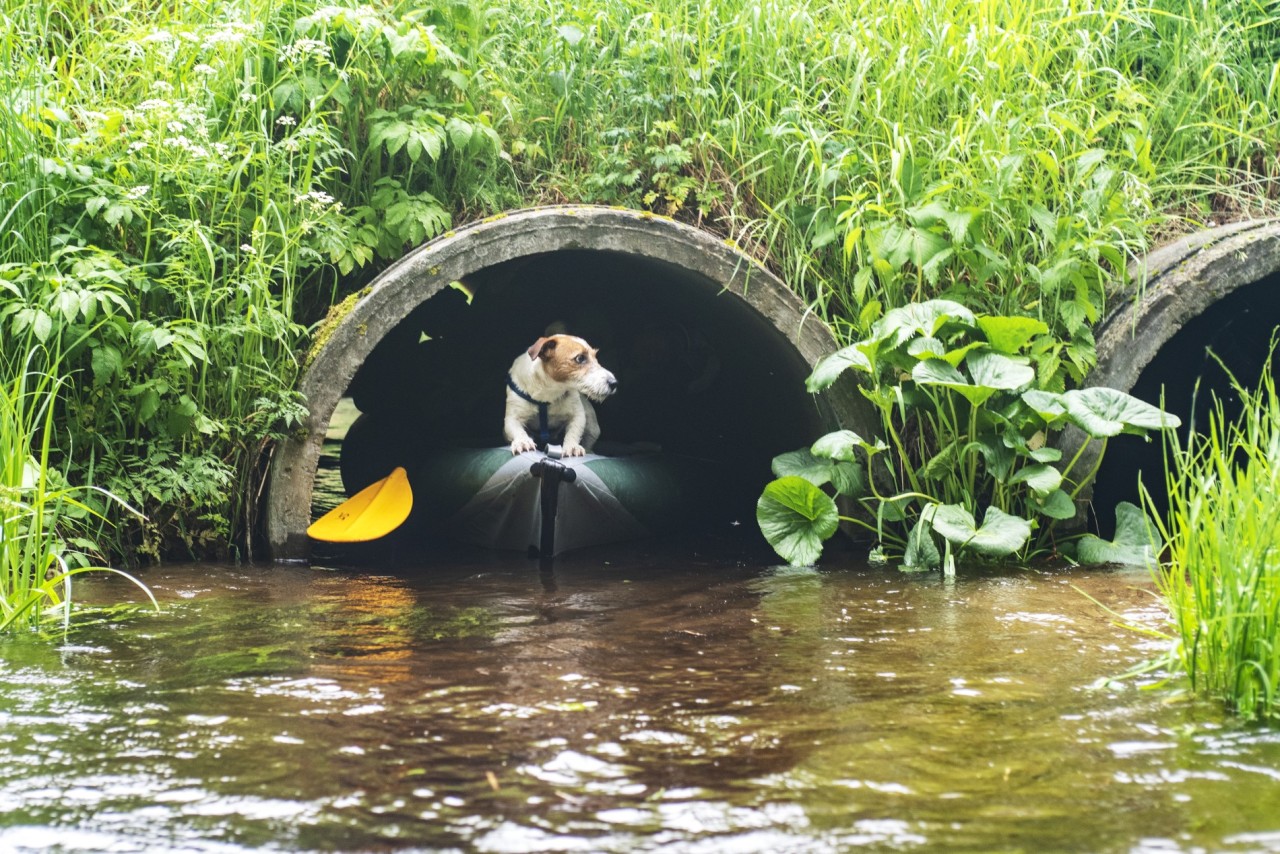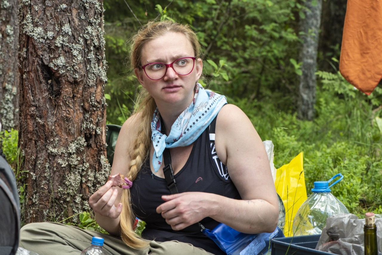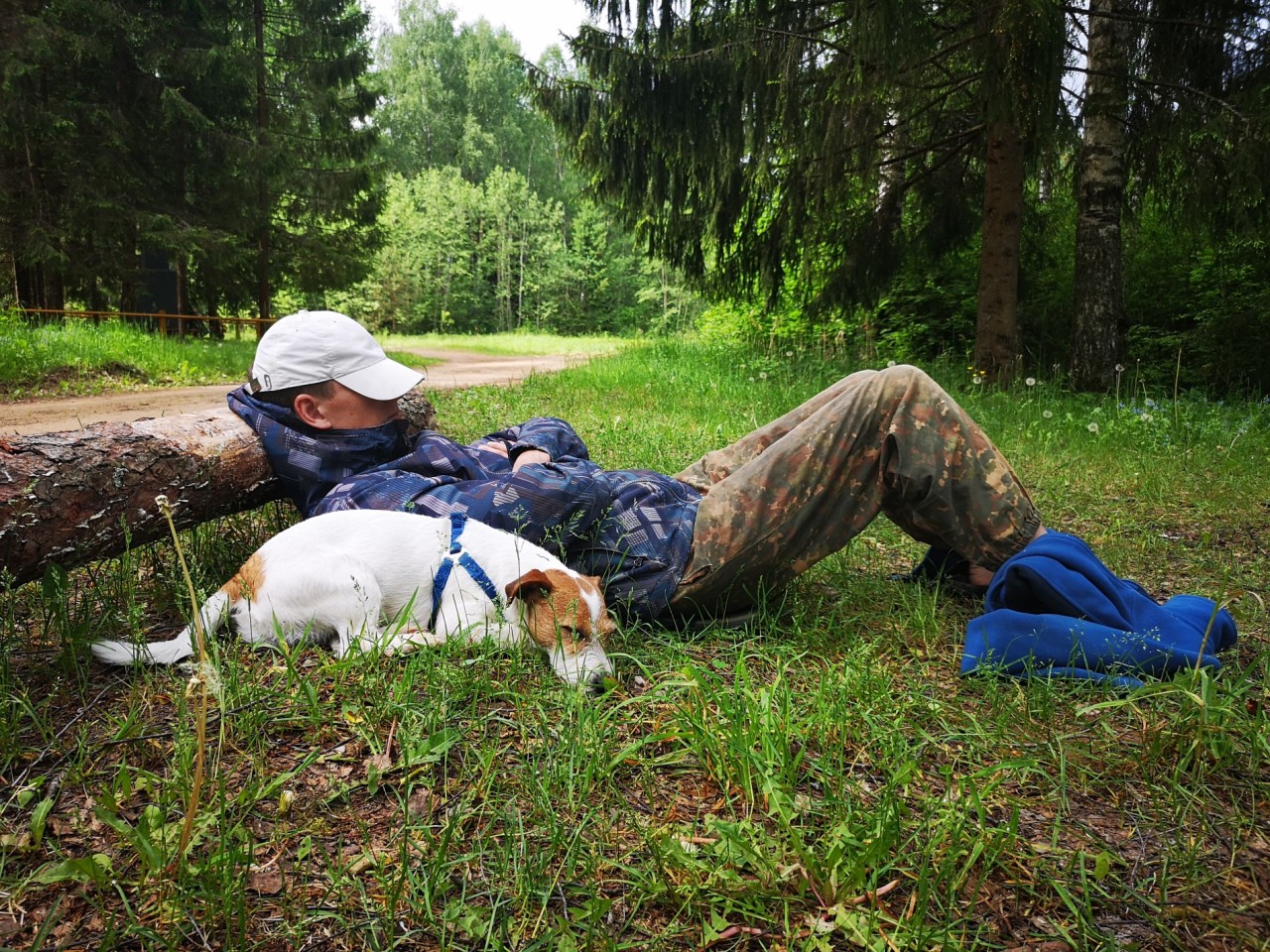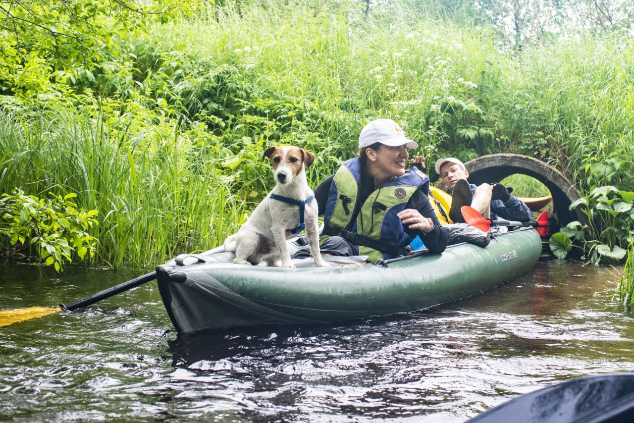 С нами ходила собака. Видно, что привычна к подобным путешествиям