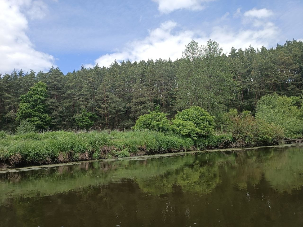 Это был великолепный солнечный и не очень жаркий день. Но лицо и руки ощутимо подгорели. 44 километра прошли за 6,5 часов. Удивили первые километры, когда вблизи городской черты Свислочь похожа на Ислочь.