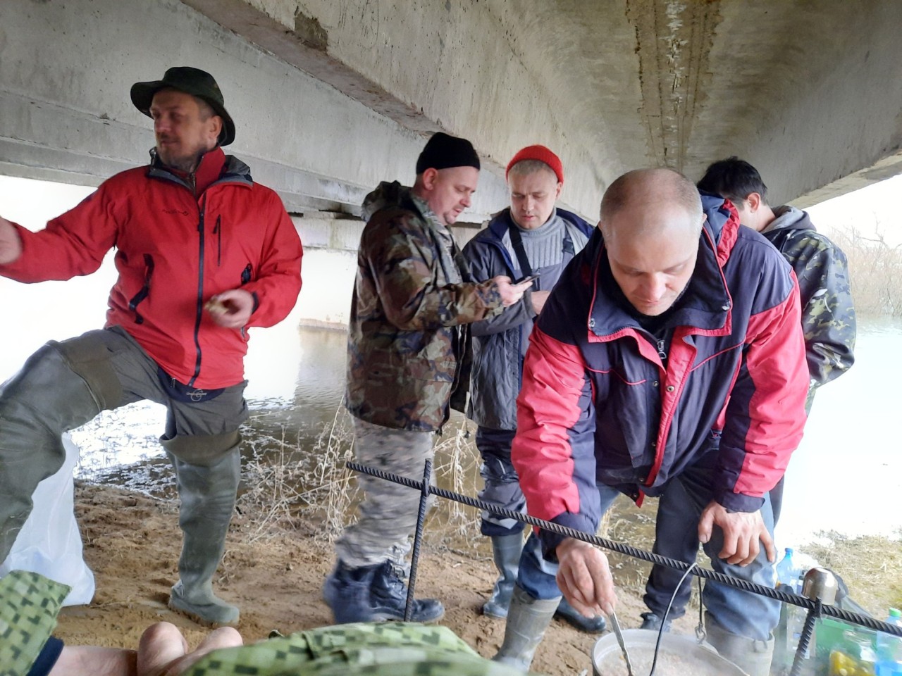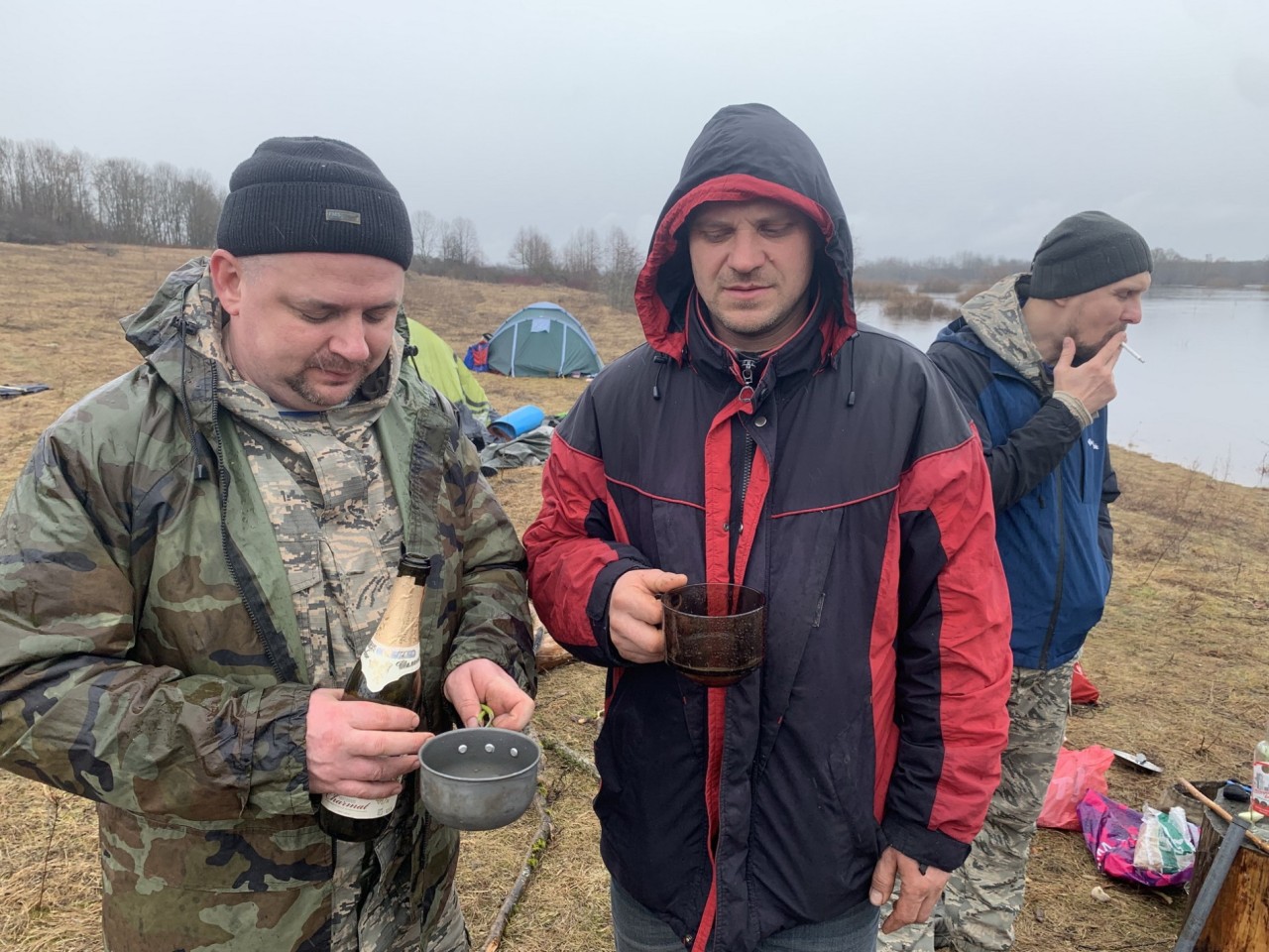 Катамараны собрали. Транцы поставили. Лодку надули. Моторы закрепили. Ожидали в снаряженном виде Виталия Роговцова, который погнал бус в Чериков. Шел дождь. Под приземистым мостом было привольно. Ветер вытягивал из-под него дым от костра. Публика праздно шаталась, материлась, хвасталась личными достижениями и обильно жестикулировала.