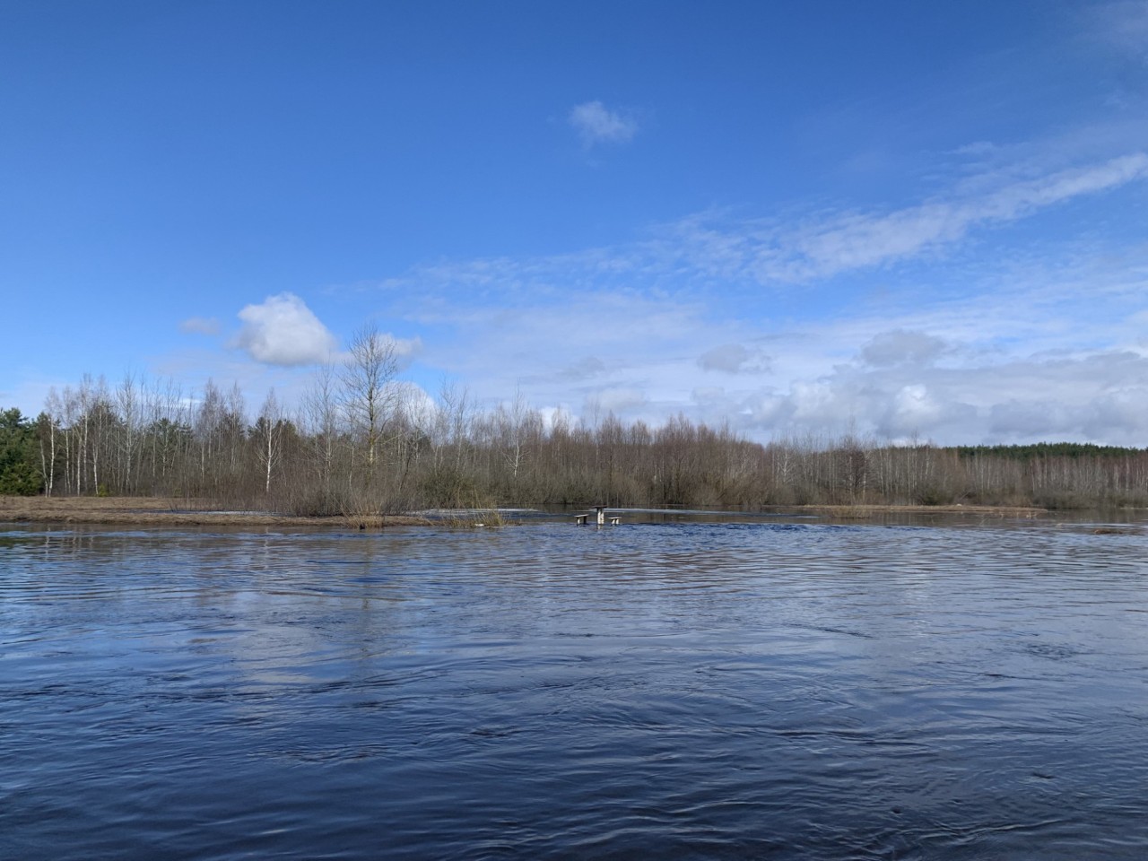 Приустьевой Остер - река пойменная. Несет он (она) свои воды в широкой трапециевидной долине. Вот по этой долине он и разлился, заполнив водой всю пойму. Среди этого «моря» из воды хаотично торчали кусты и деревья. Клинья леса к реке подходят не часто. По карте навигация бессмысленна. Движение по руслу в основном бесполезно. Актуален лишь навигатор.