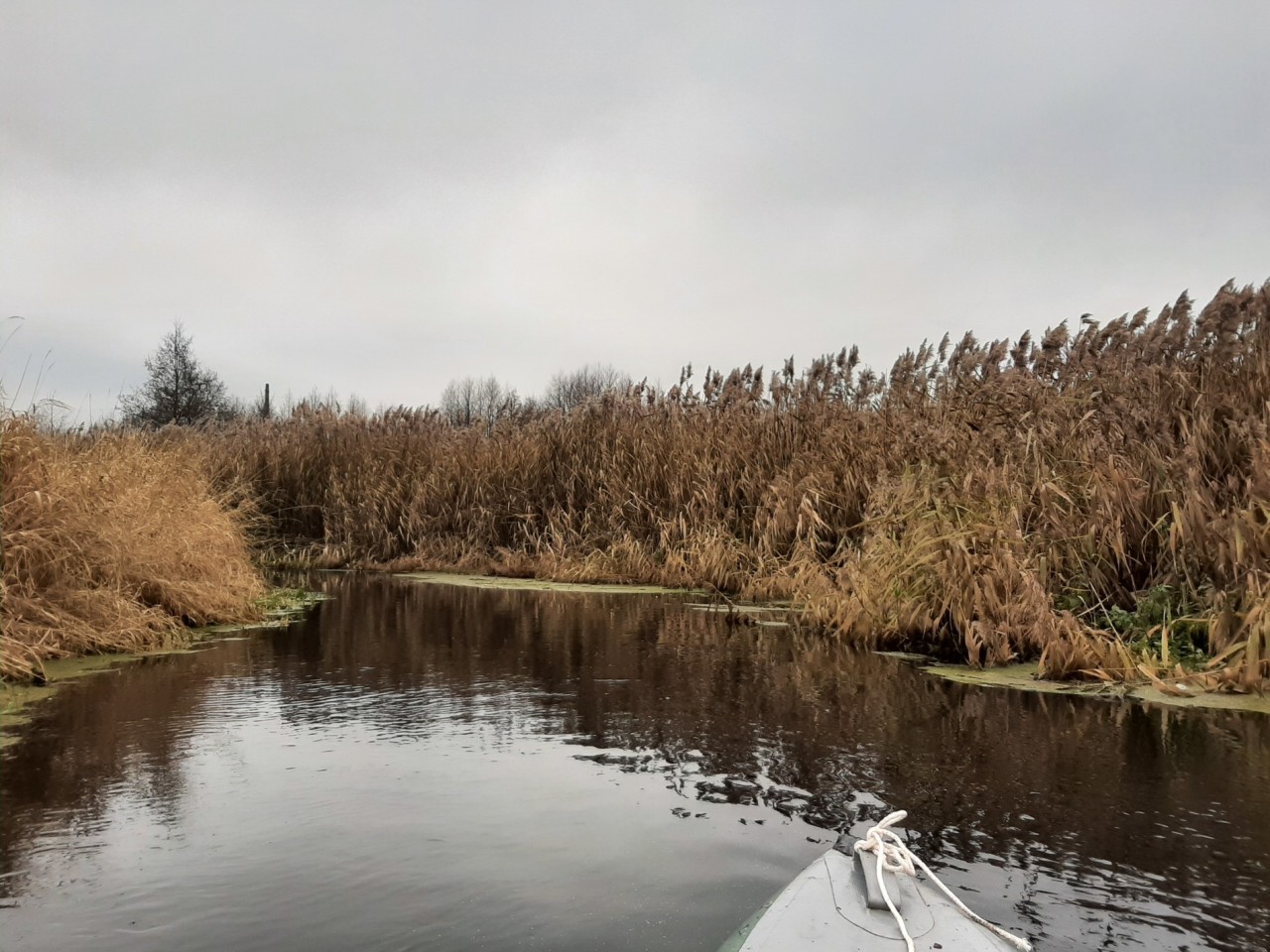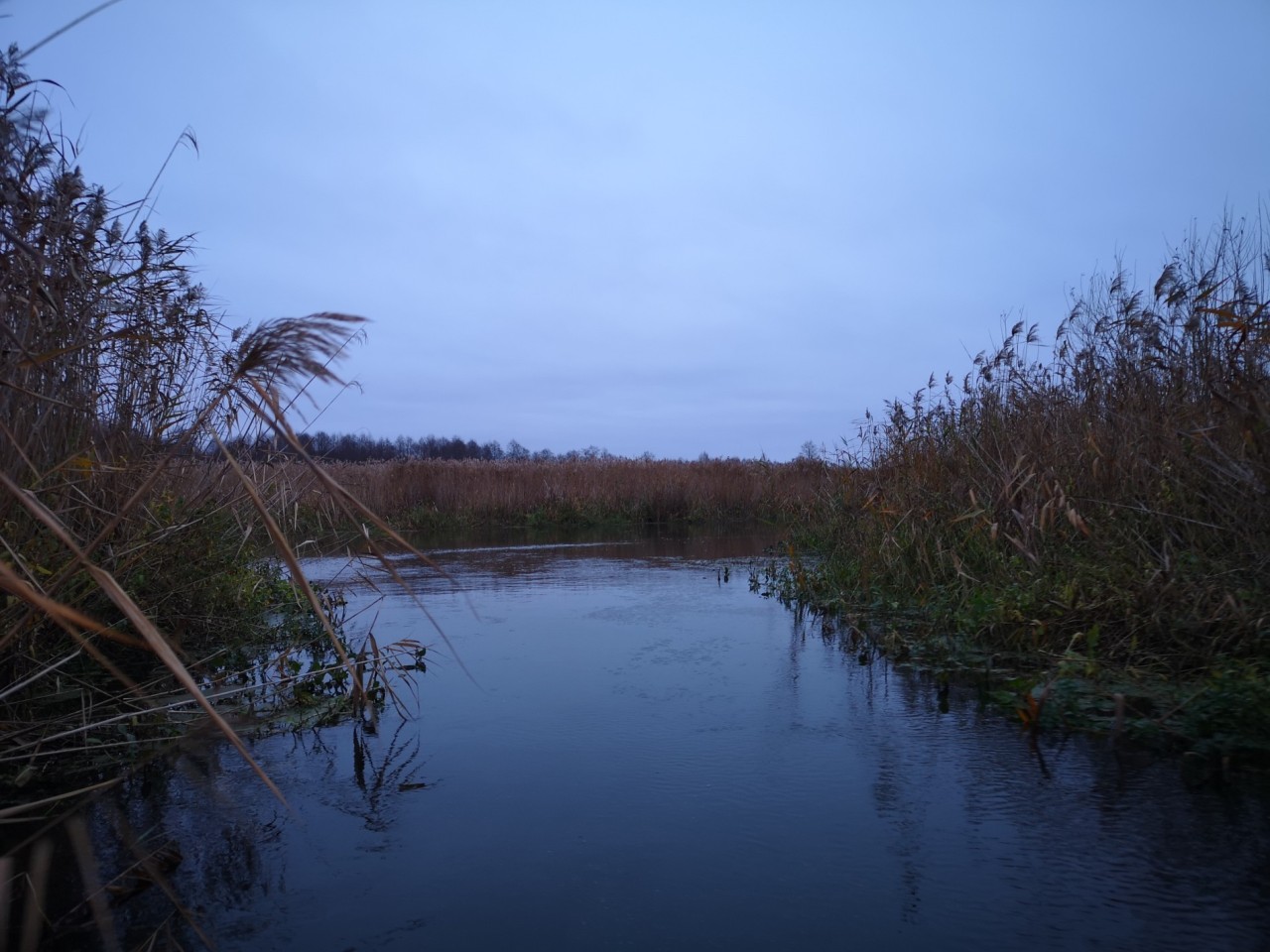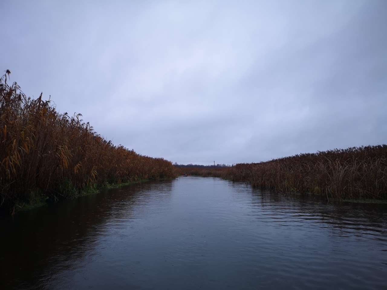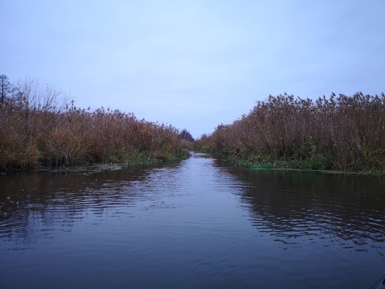 Птичь на этом участке идется медленно и тяжело, особенно против ветра. Напоминает она скорее цепочку русловых озер. Твердого берега нет. С двух сторон шелестящий могучий тростник, сплошной стеной. Теперь в темноте казался он особенно зловещим. Ближайший сухой пятачок за деревней Ветеревичи 1. От устья Шати до неё семь километров. Глаз к тому времени очень заебался. С шапки, как обычно, слетел налобный фонарь (к этому уже тоже привык: один водный поход-один фонарик). Идти, конечно, легче с навигатором. Удобно смотреть на оставшееся и рассчитывать силы. Это было не про сегодня. Все было очень небыстро и километры проходились не на халяву.