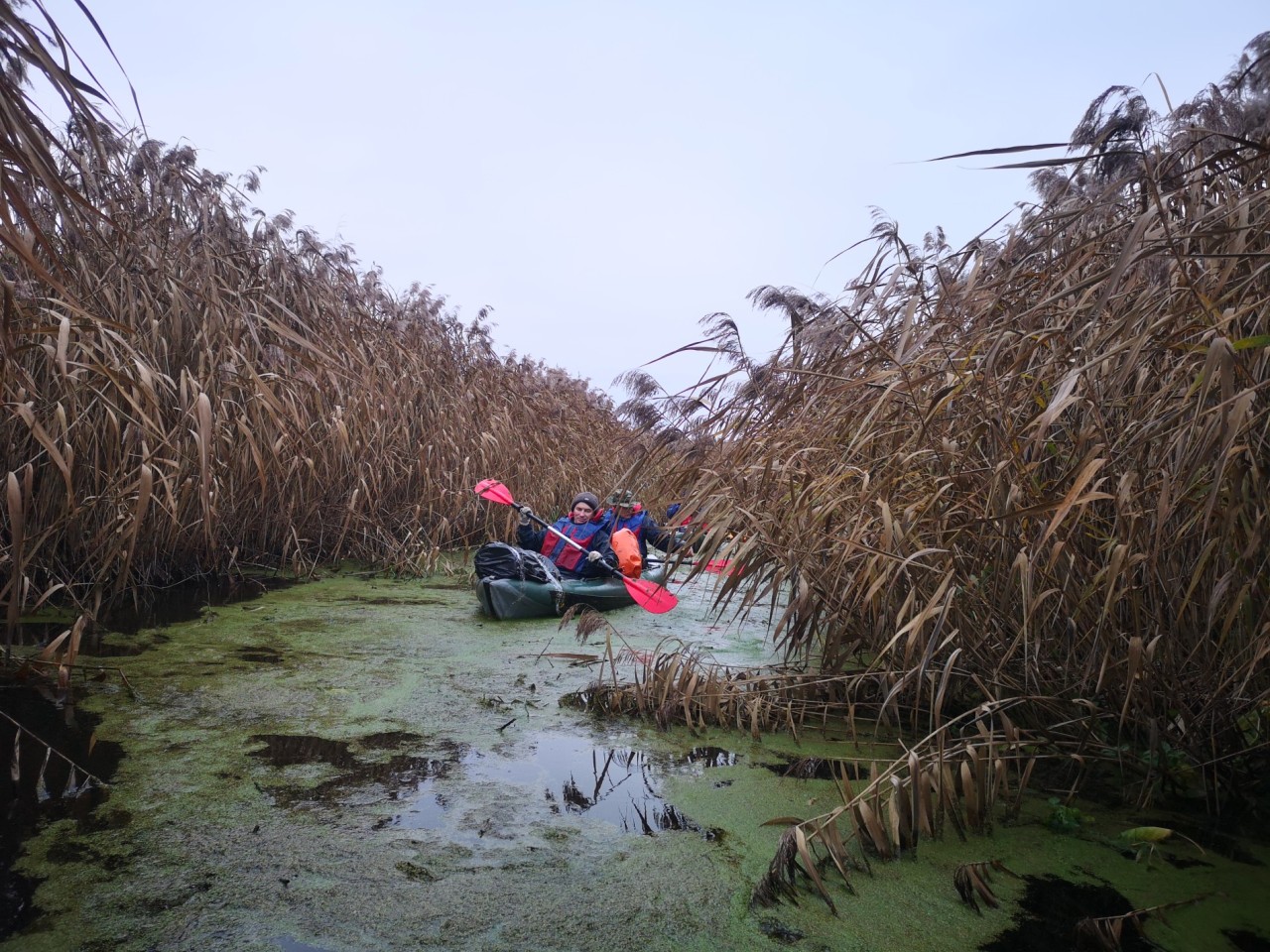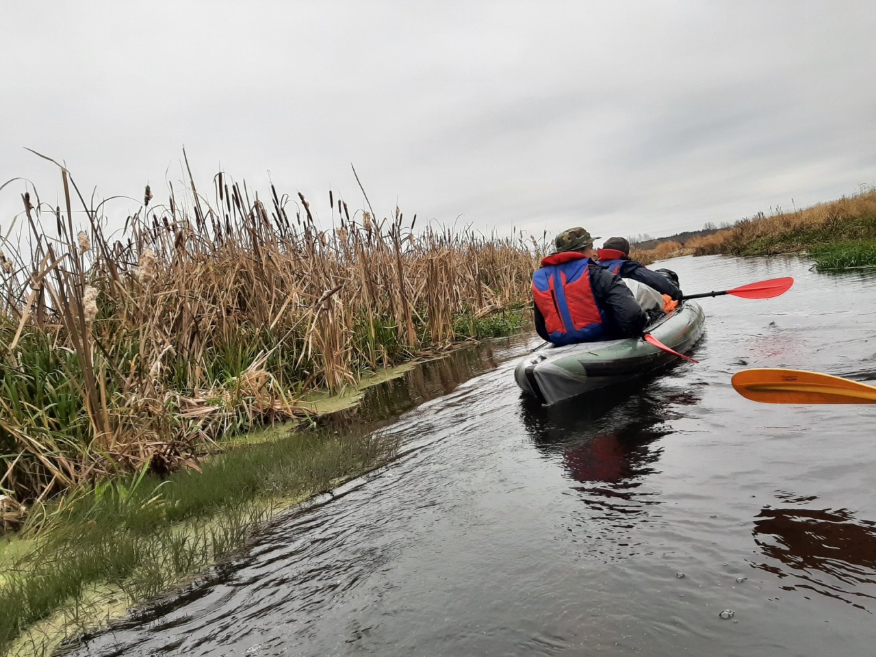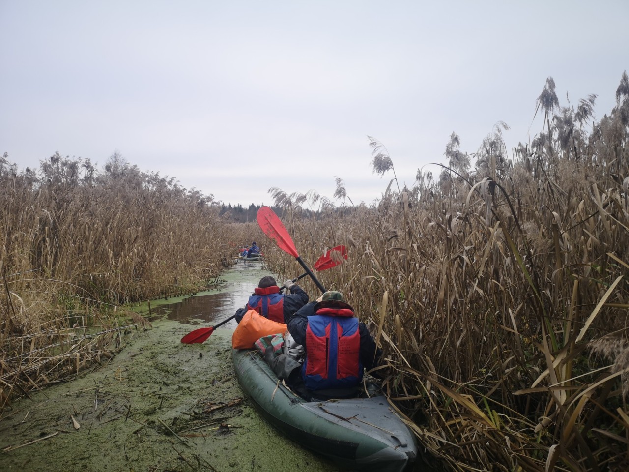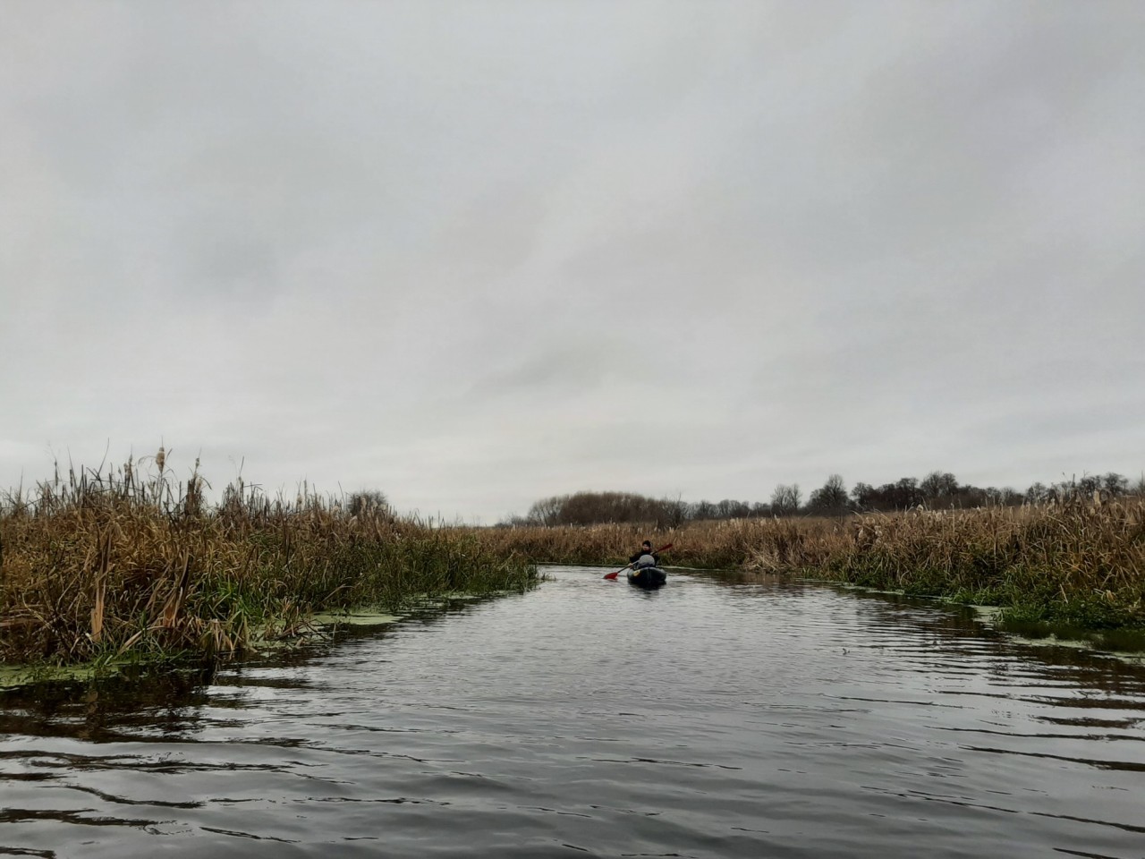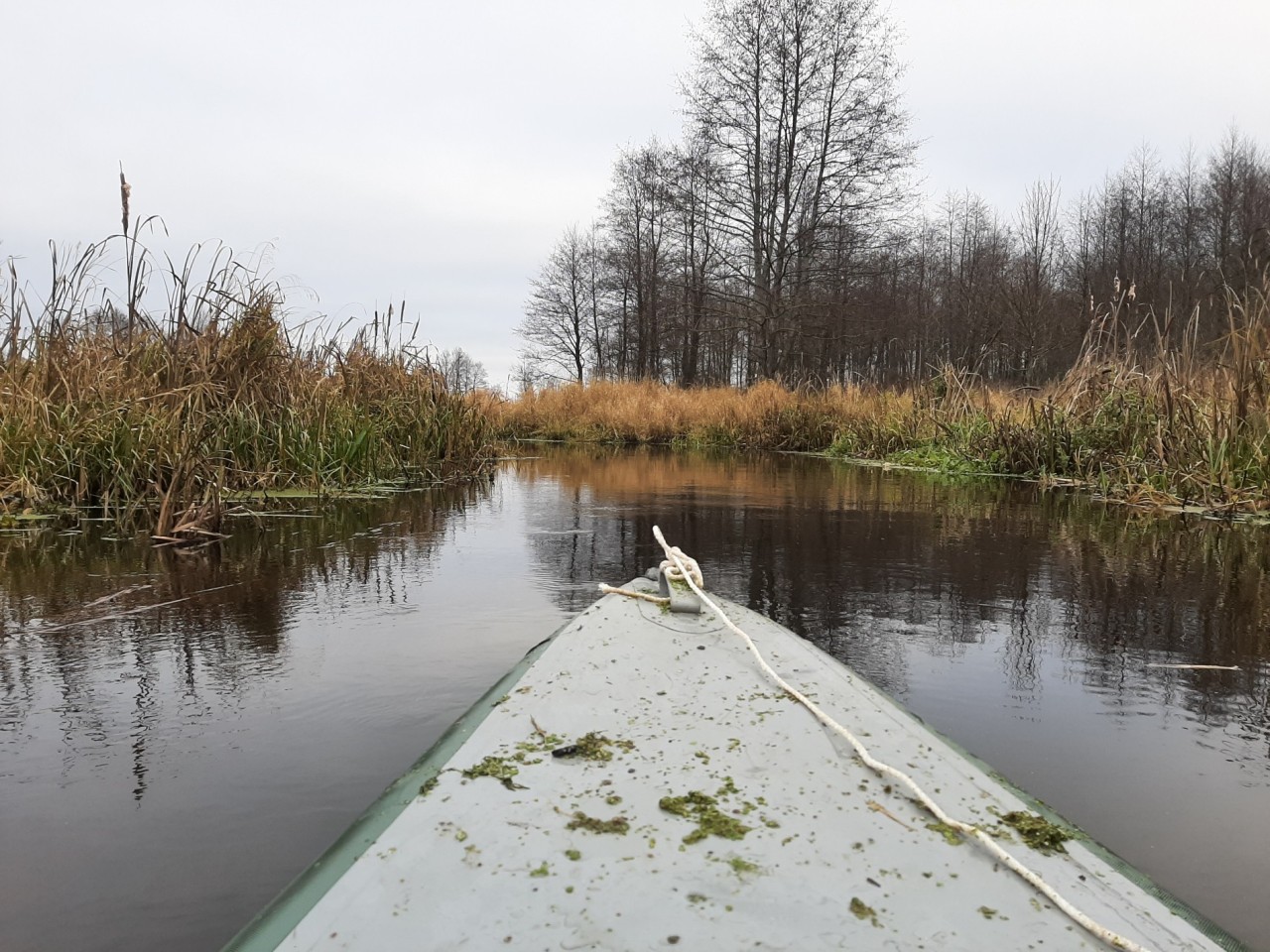 Птичь на этом участке идется медленно и тяжело, особенно против ветра. Напоминает она скорее цепочку русловых озер. Твердого берега нет. С двух сторон шелестящий могучий тростник, сплошной стеной. Теперь в темноте казался он особенно зловещим. Ближайший сухой пятачок за деревней Ветеревичи 1. От устья Шати до неё семь километров. Глаз к тому времени очень заебался. С шапки, как обычно, слетел налобный фонарь (к этому уже тоже привык: один водный поход-один фонарик). Идти, конечно, легче с навигатором. Удобно смотреть на оставшееся и рассчитывать силы. Это было не про сегодня. Все было очень небыстро и километры проходились не на халяву.