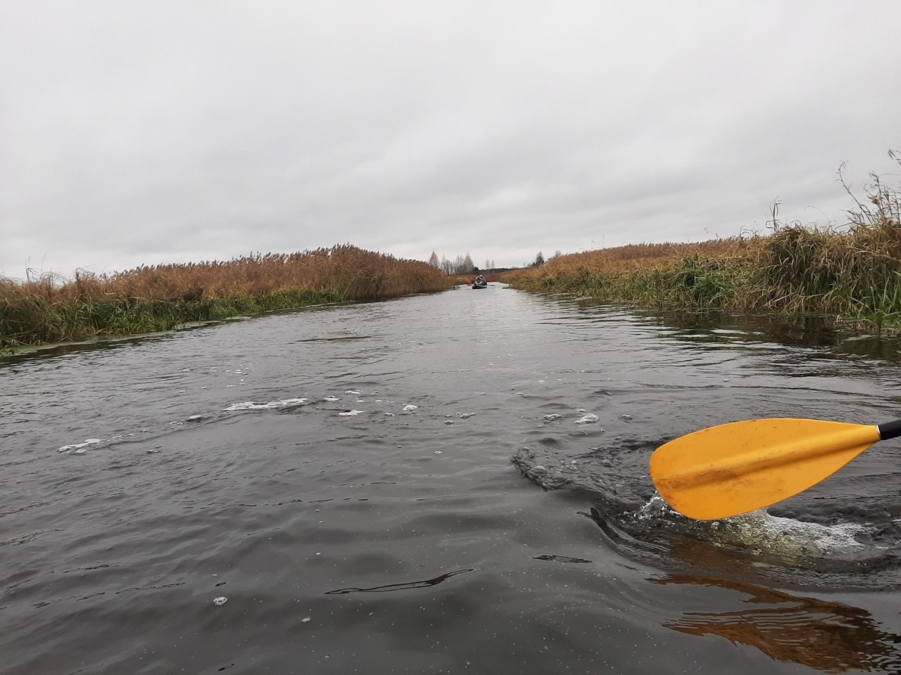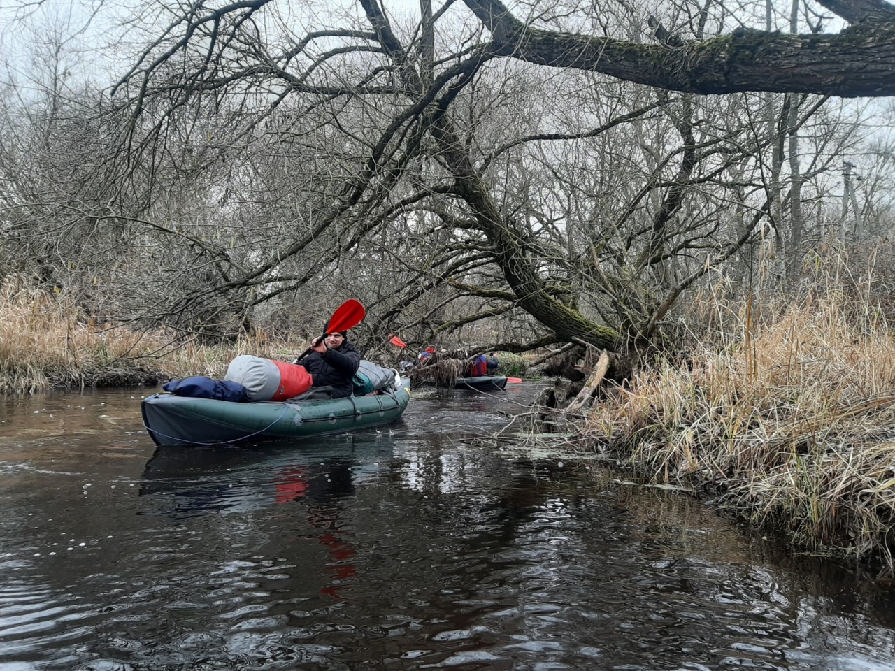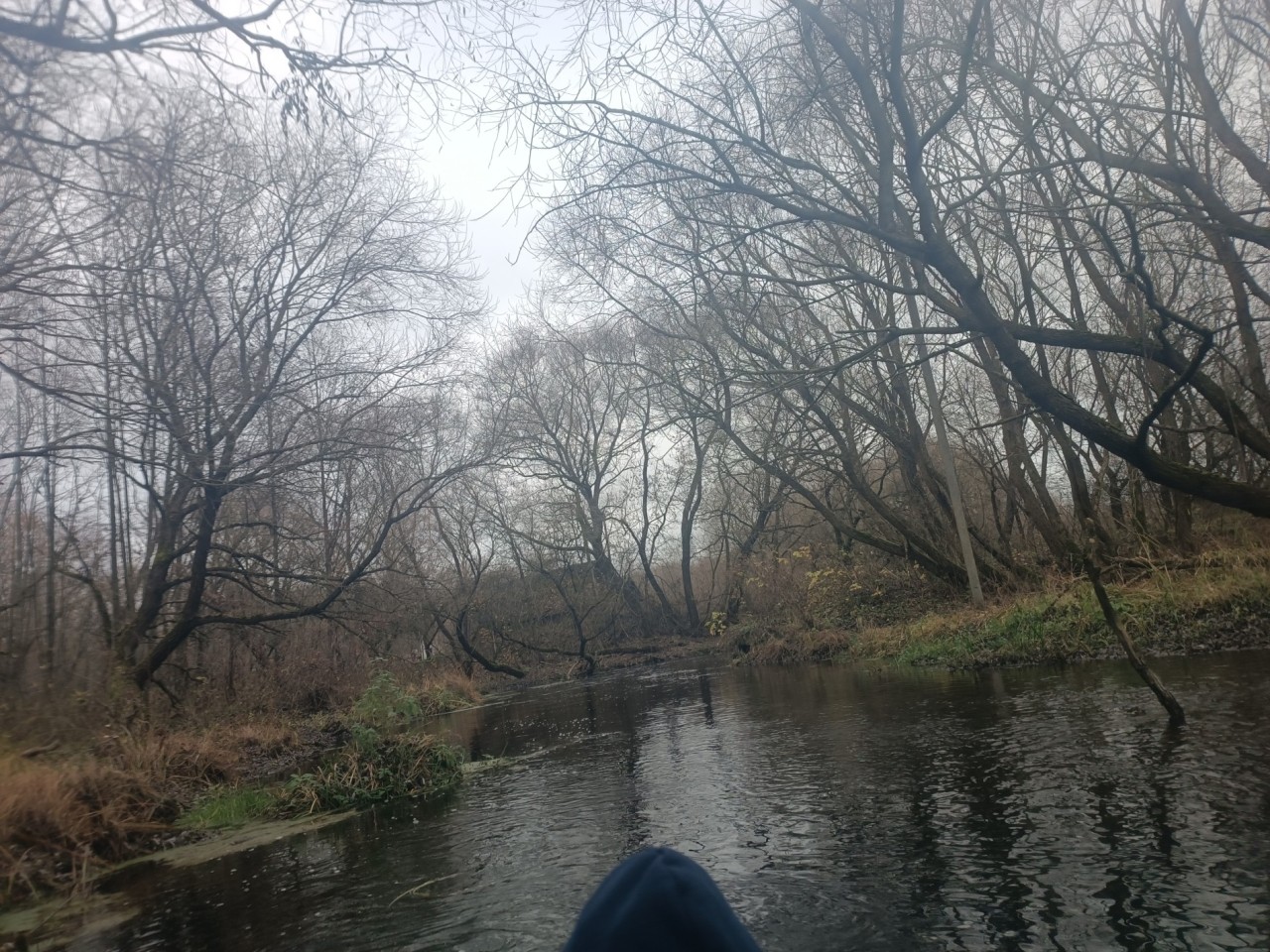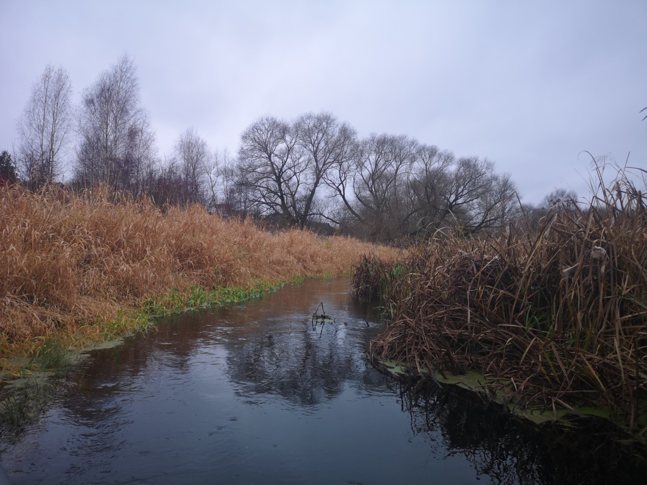Ноябрь для байдарок время хорошее. Нет кровососущих насекомых, да не жарко. Водная растительность к тому времени ложится на дно. По сплавам в межсезонье я даже соскучился. Но как бы то ни было это короткий световой день. И если не сразу, то се равно к концу ходового пути становишься мокрый и вымерзаешь. Сплошное небо, серое и унылое, довлеет и напоминает скорлупу.