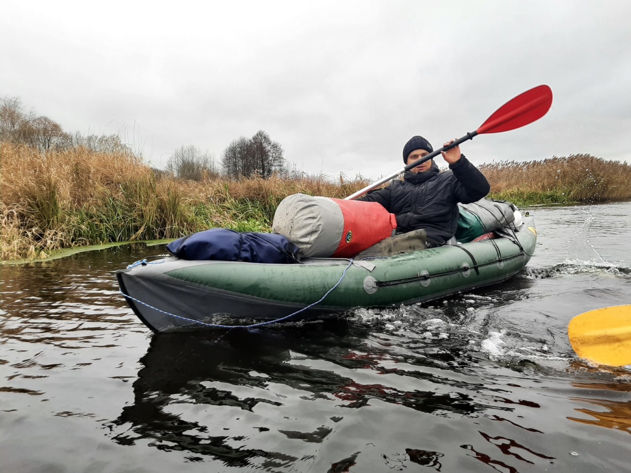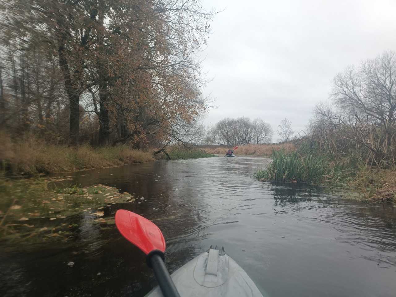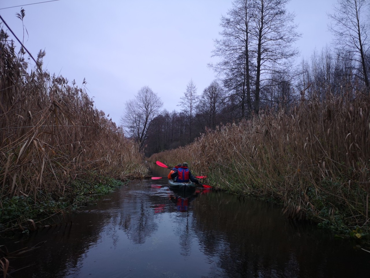 Ноябрь для байдарок время хорошее. Нет кровососущих насекомых, да не жарко. Водная растительность к тому времени ложится на дно. По сплавам в межсезонье я даже соскучился. Но как бы то ни было это короткий световой день. И если не сразу, то се равно к концу ходового пути становишься мокрый и вымерзаешь. Сплошное небо, серое и унылое, довлеет и напоминает скорлупу.