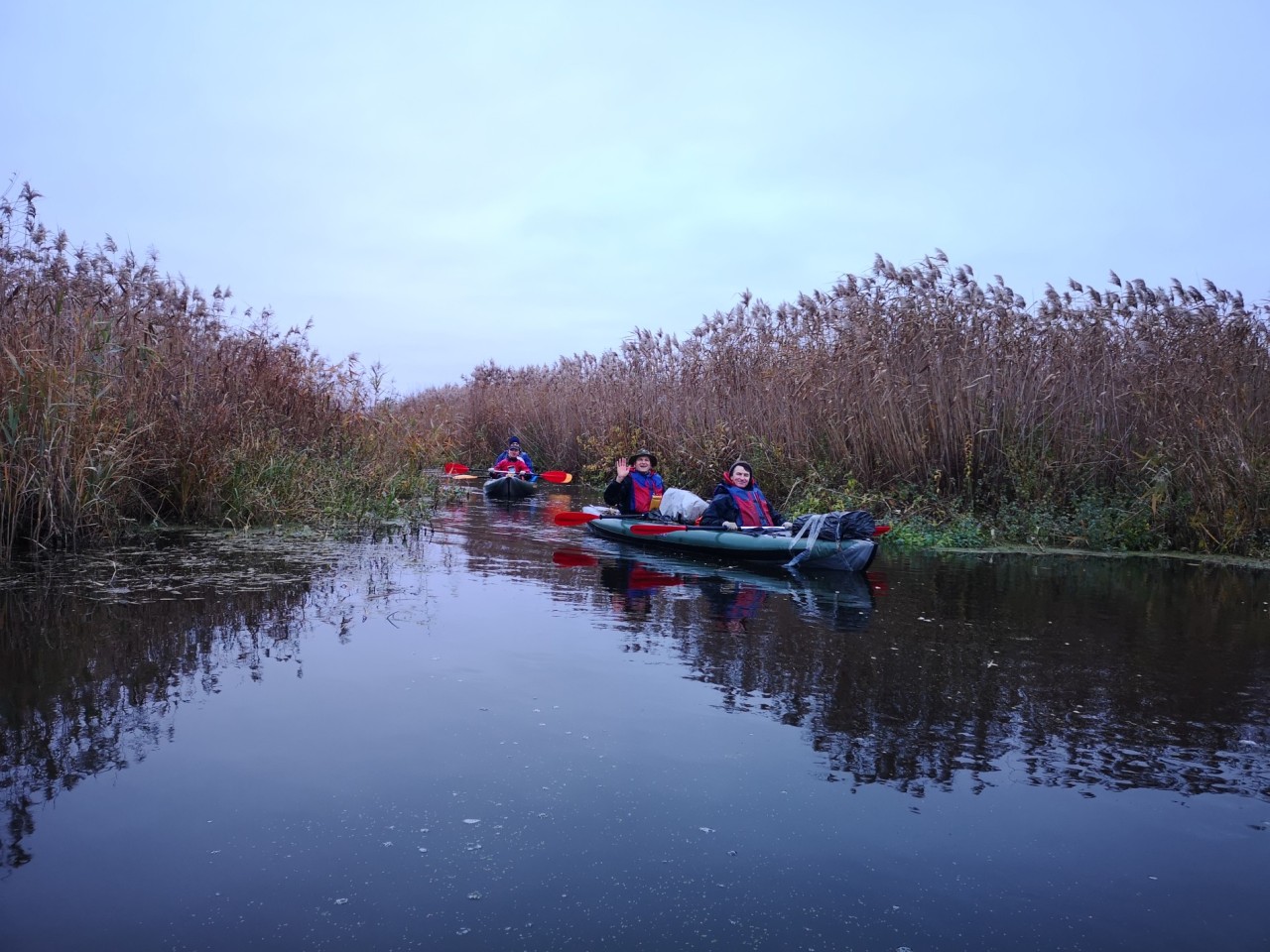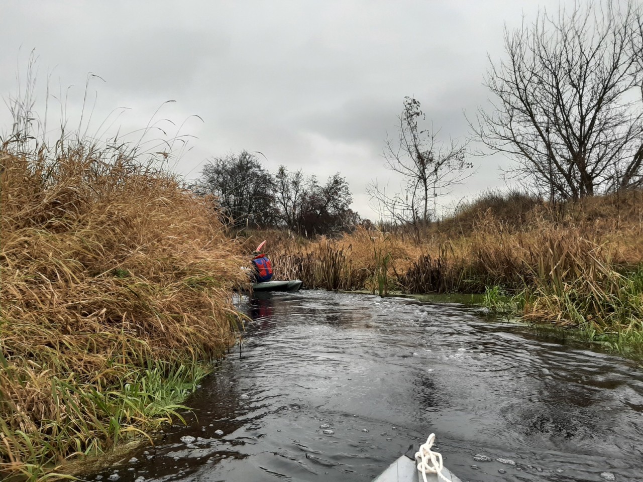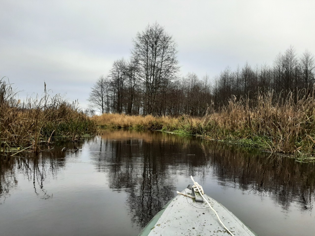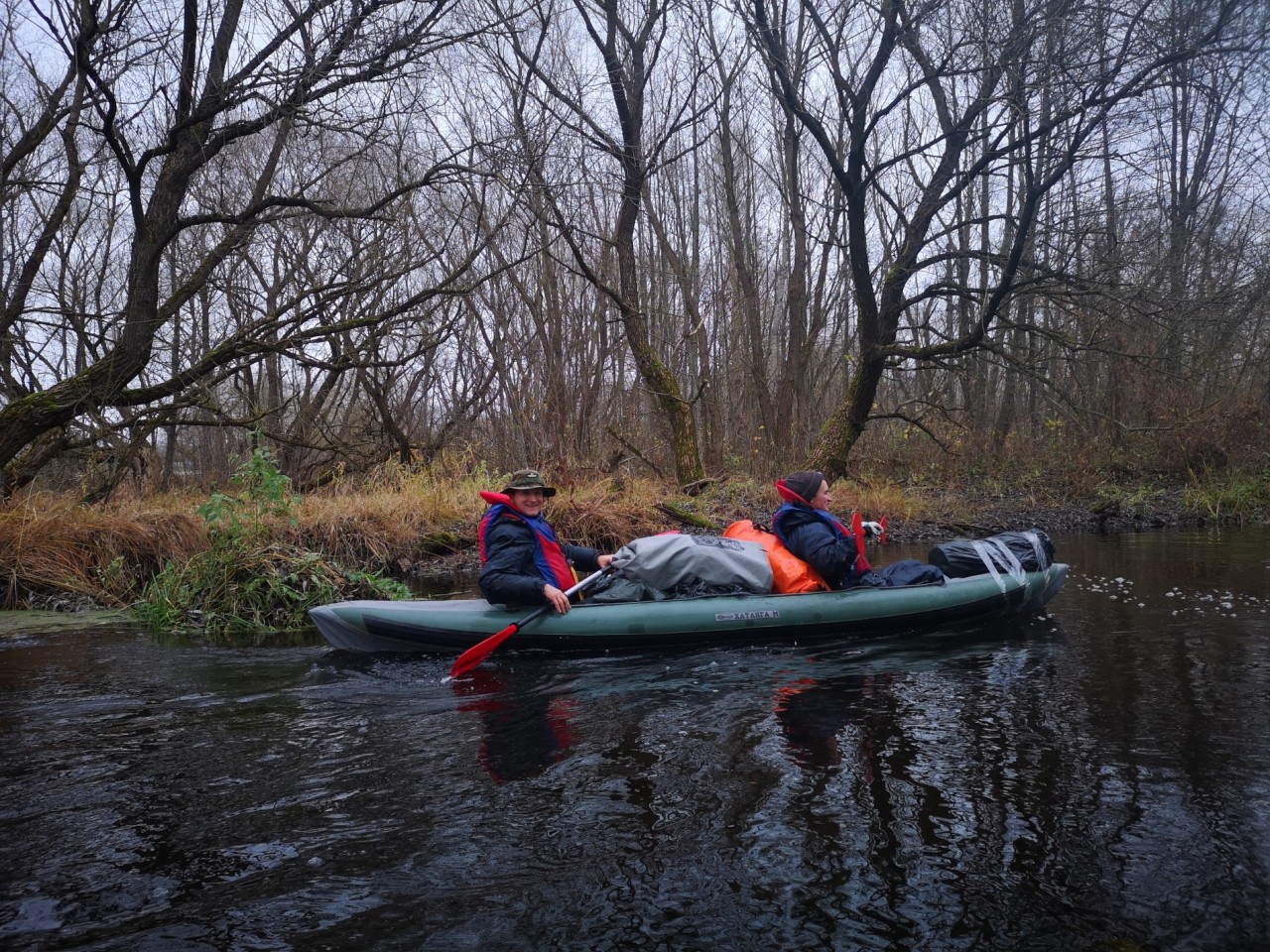 Ноябрь для байдарок время хорошее. Нет кровососущих насекомых, да не жарко. Водная растительность к тому времени ложится на дно. По сплавам в межсезонье я даже соскучился. Но как бы то ни было это короткий световой день. И если не сразу, то се равно к концу ходового пути становишься мокрый и вымерзаешь. Сплошное небо, серое и унылое, довлеет и напоминает скорлупу.