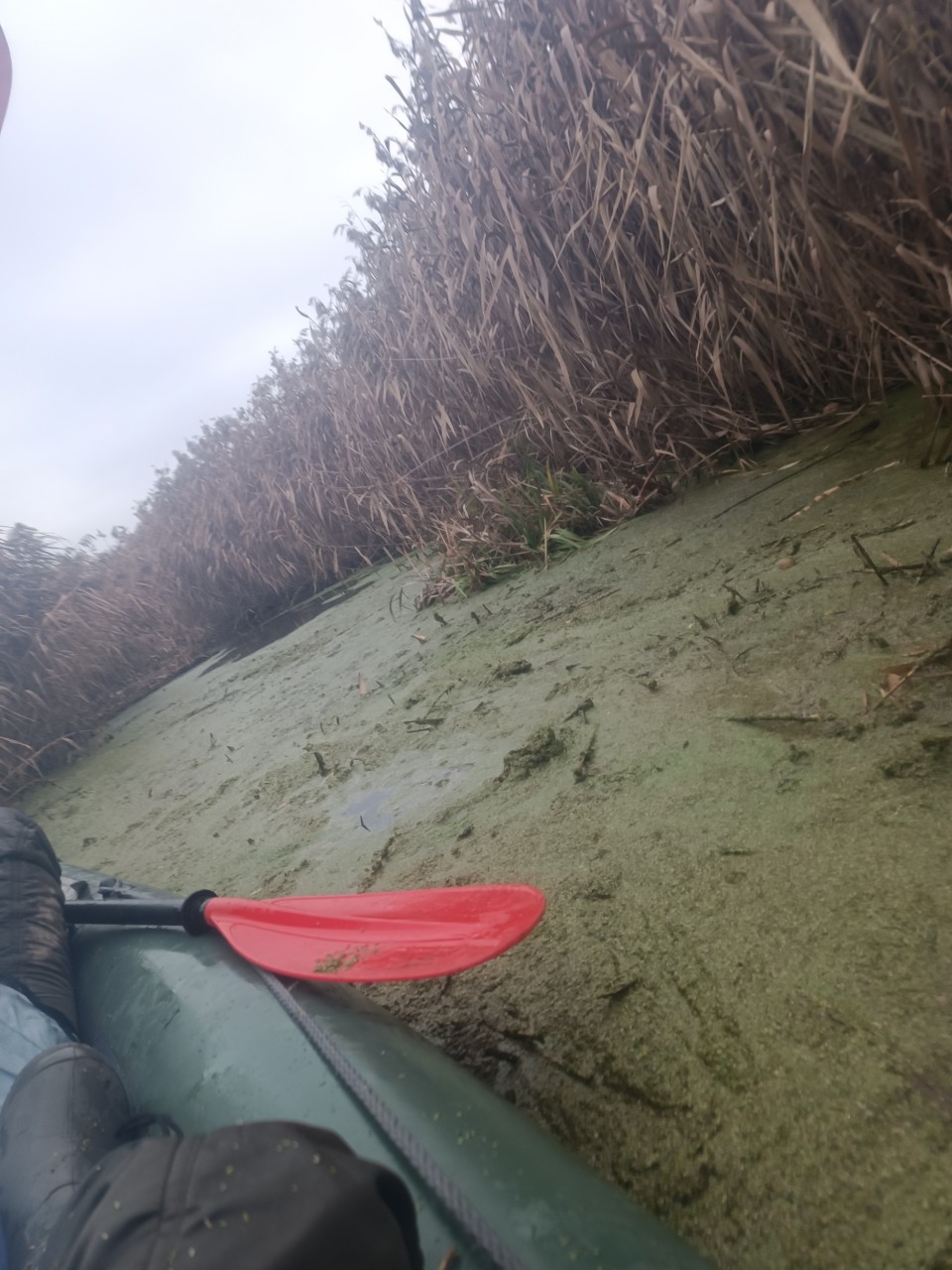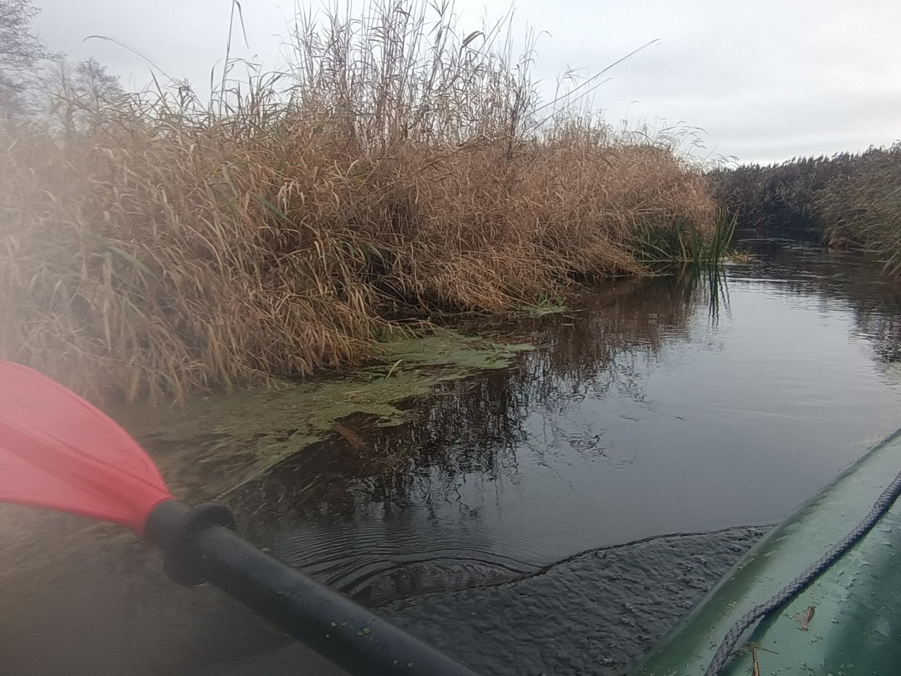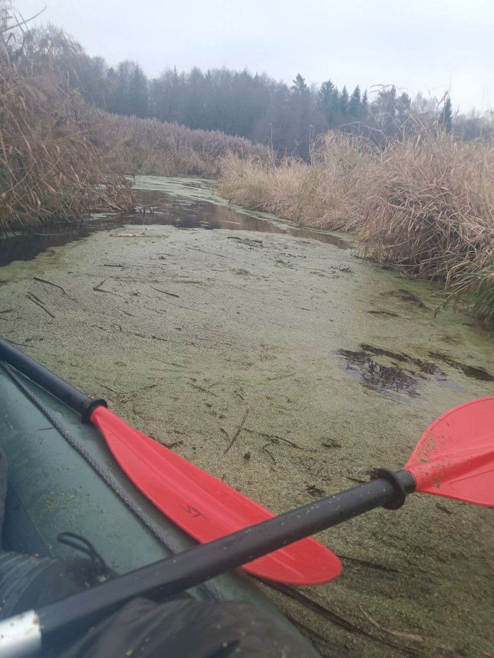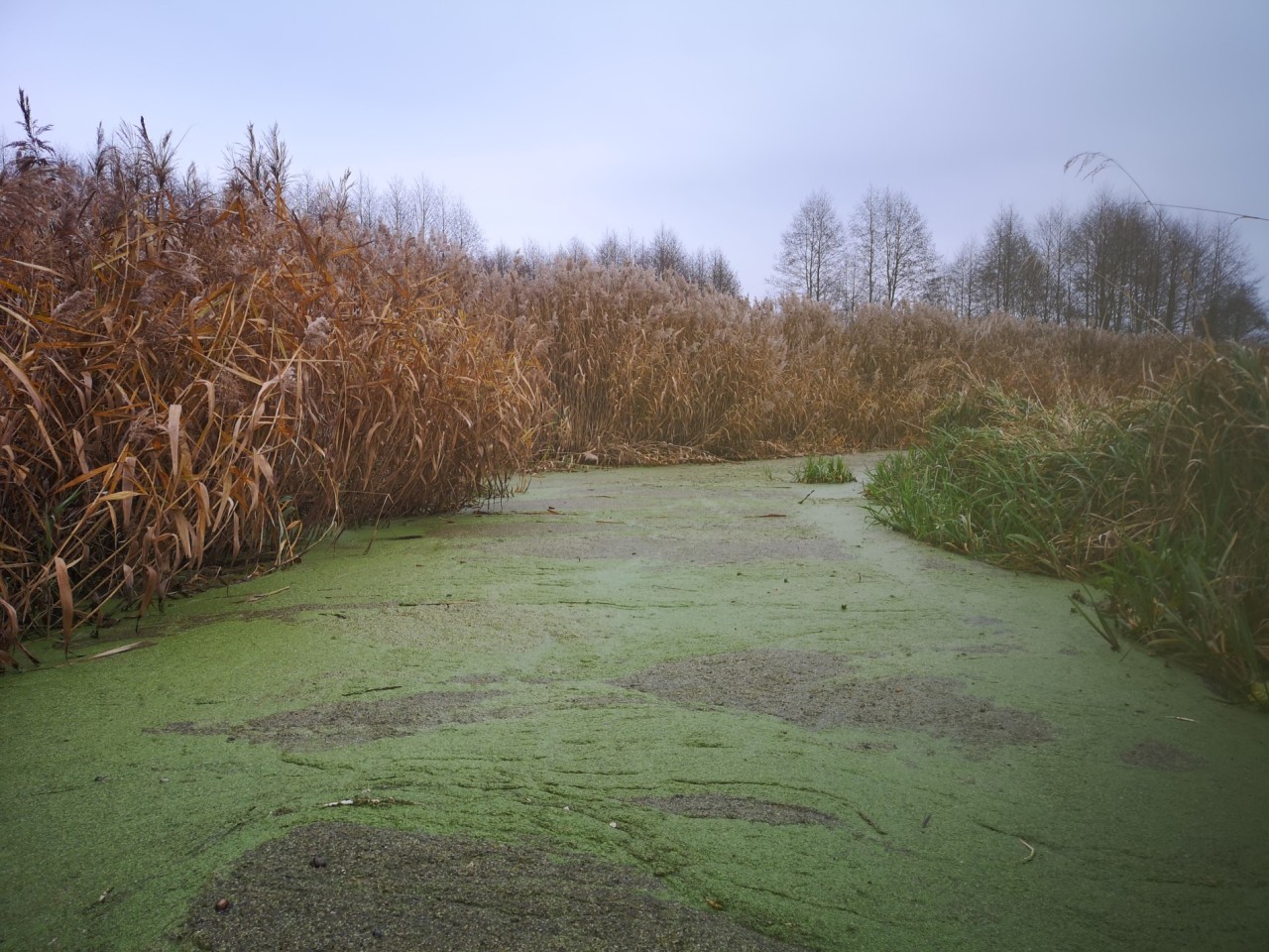 Дальнейший сюрприз был весьма оригинальным. Начало с закономерной эпизодичностью встречаться то, что до этого видел лишь один раз и здесь менее всего ожидал встретить. Тем более в ноябре, нахуй. В сентябре 2020г проходя по реке Ствига мы наткнулись пробку из ряски.