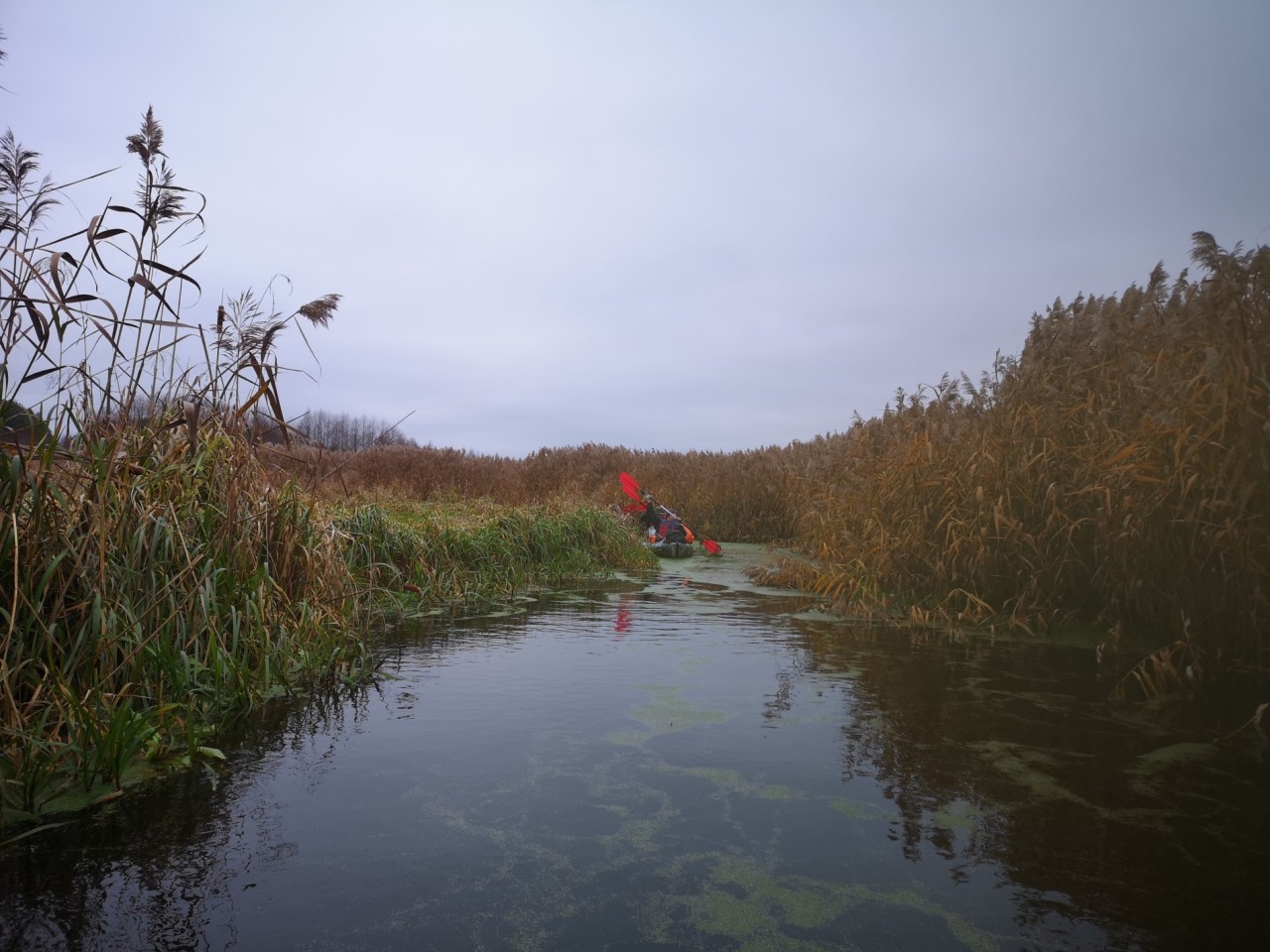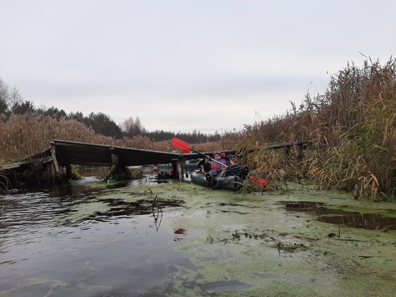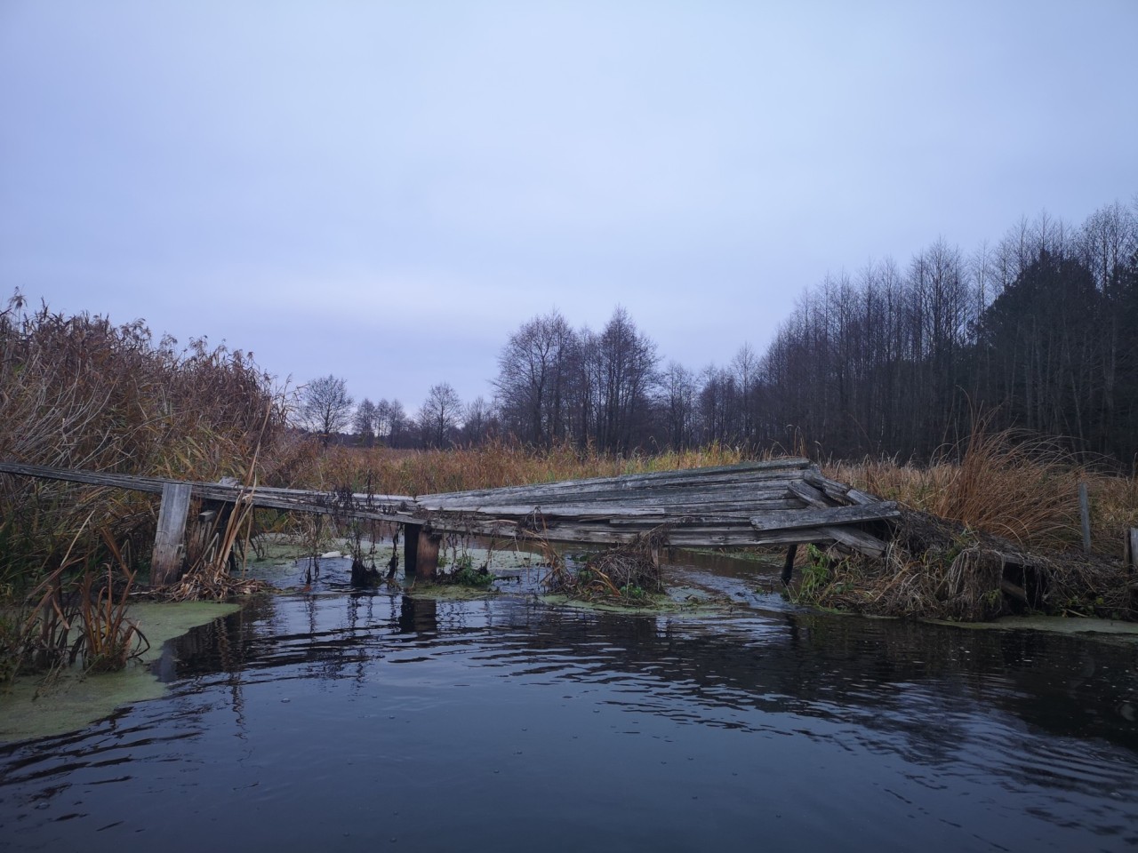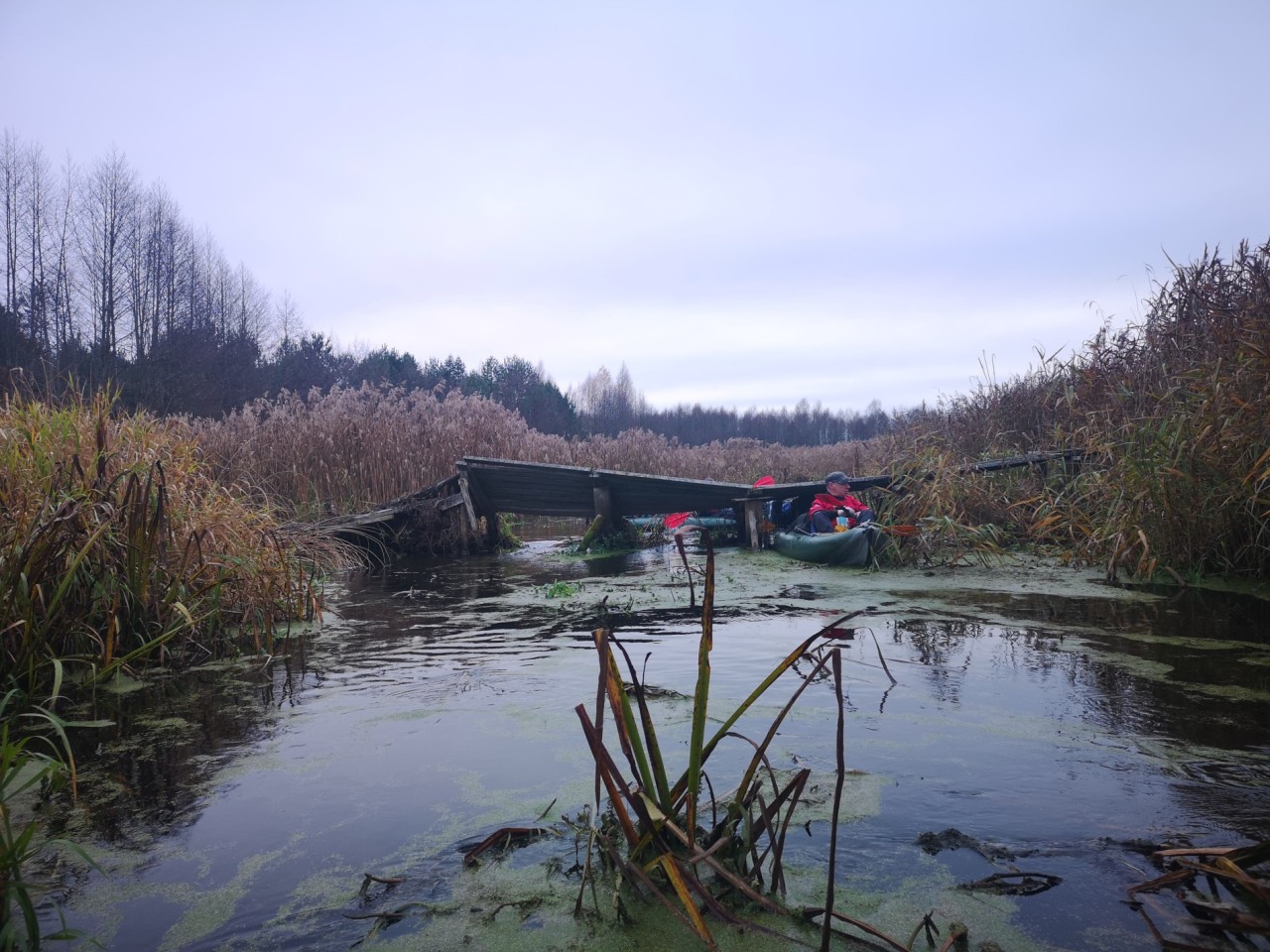 Дальнейший сюрприз был весьма оригинальным. Начало с закономерной эпизодичностью встречаться то, что до этого видел лишь один раз и здесь менее всего ожидал встретить. Тем более в ноябре, нахуй. В сентябре 2020г проходя по реке Ствига мы наткнулись пробку из ряски.