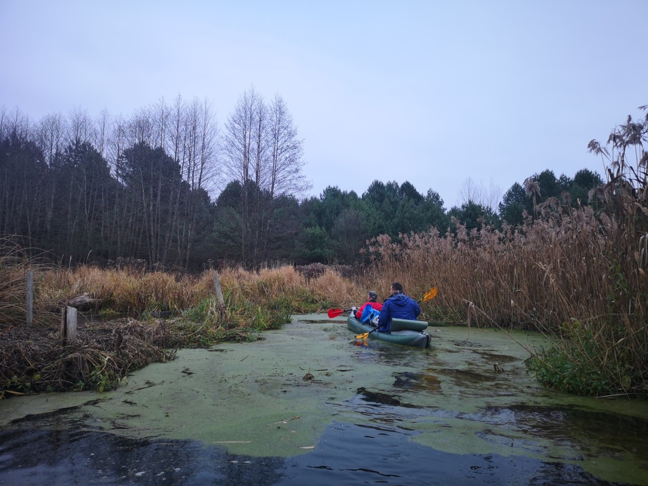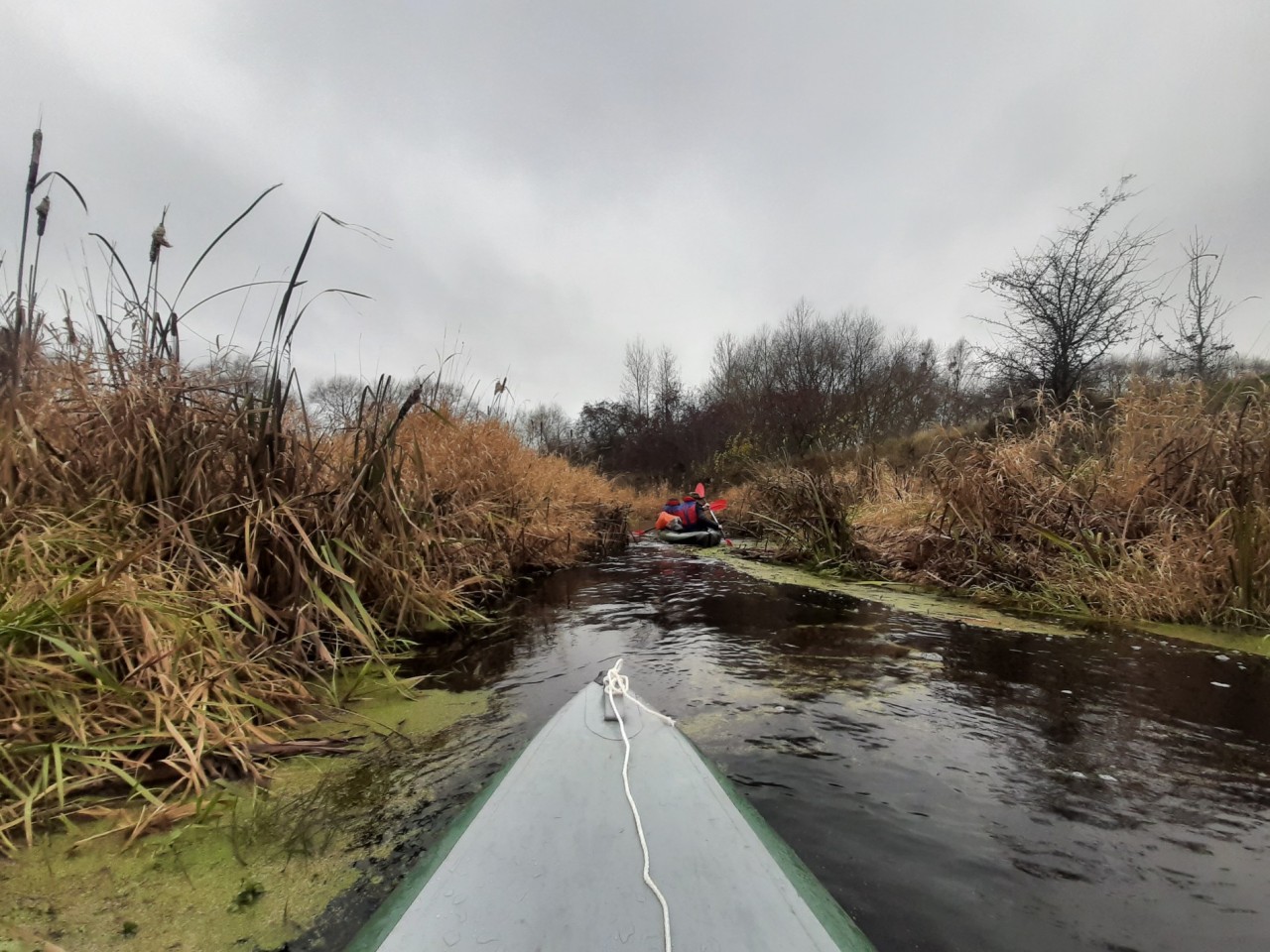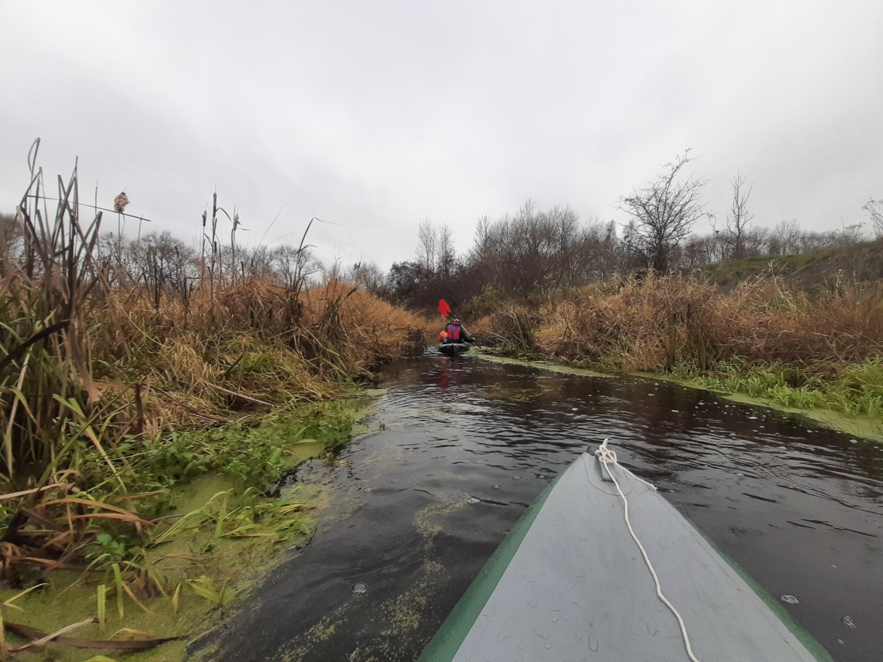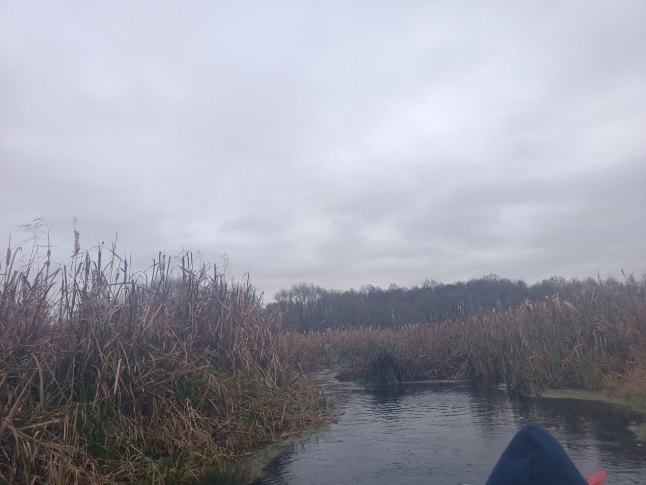 Дальнейший сюрприз был весьма оригинальным. Начало с закономерной эпизодичностью встречаться то, что до этого видел лишь один раз и здесь менее всего ожидал встретить. Тем более в ноябре, нахуй. В сентябре 2020г проходя по реке Ствига мы наткнулись пробку из ряски.