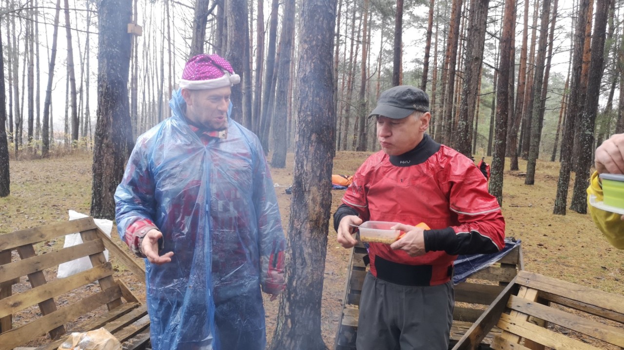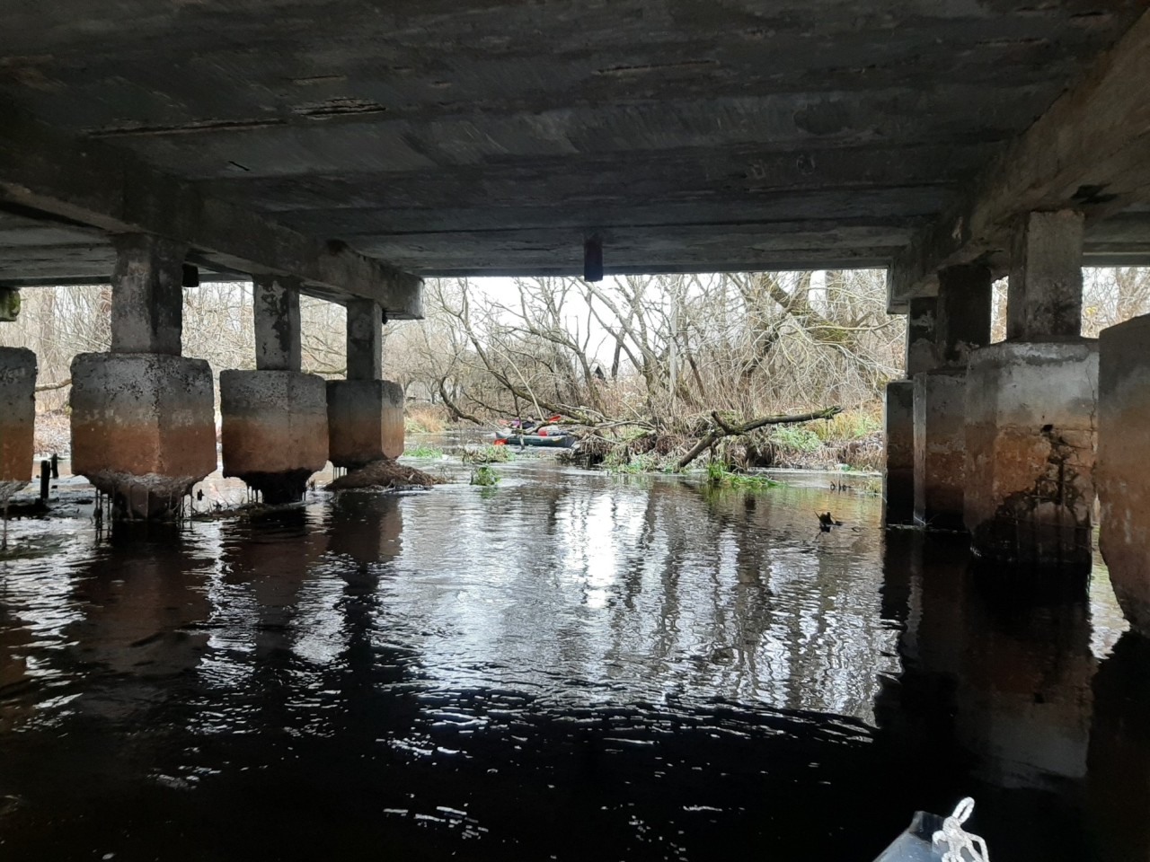 Вон он и показался бетонный мост. Идти до следующего (Клетное) ровно двадцать километров. Приснопамятный Кирилл Тихомиров бы пошел. Вызвали нового внештатного водителя Баскова (штатный за час до похода покинул состав). Тем более, что в Пуховичский район Басков ездит охотно. Было ещё светло и достаточно времени. Решили сварить уху. Не было лишь картошки. За картошкой сходили в деревню и просто попросили. Под невысоким мостом было уютно. Немного сумрачно, зато без дождя. Дым от костра вытягивало. Остаток дня прошел весело и беспечно. Басков приехал, когда еще не было темно.