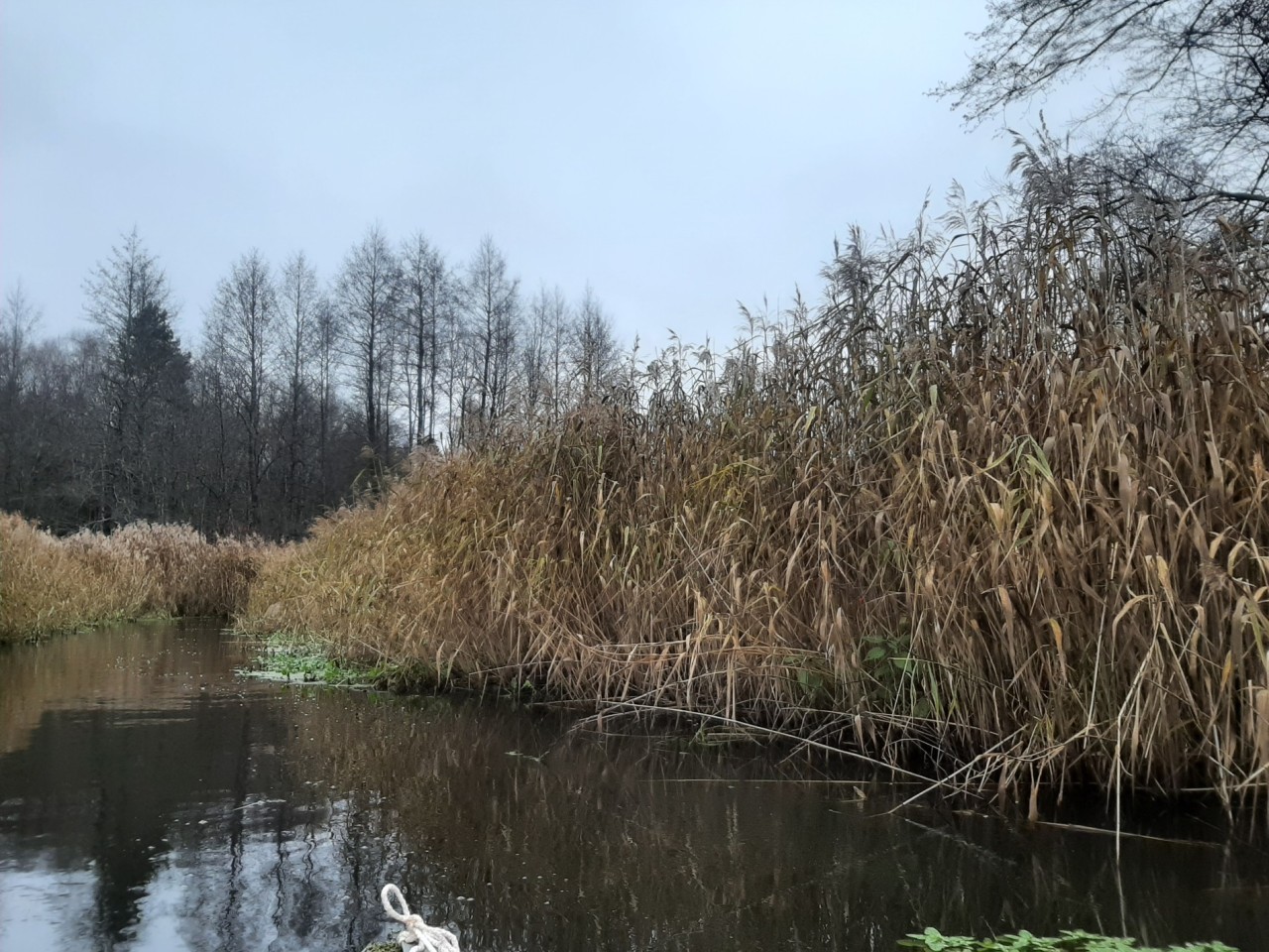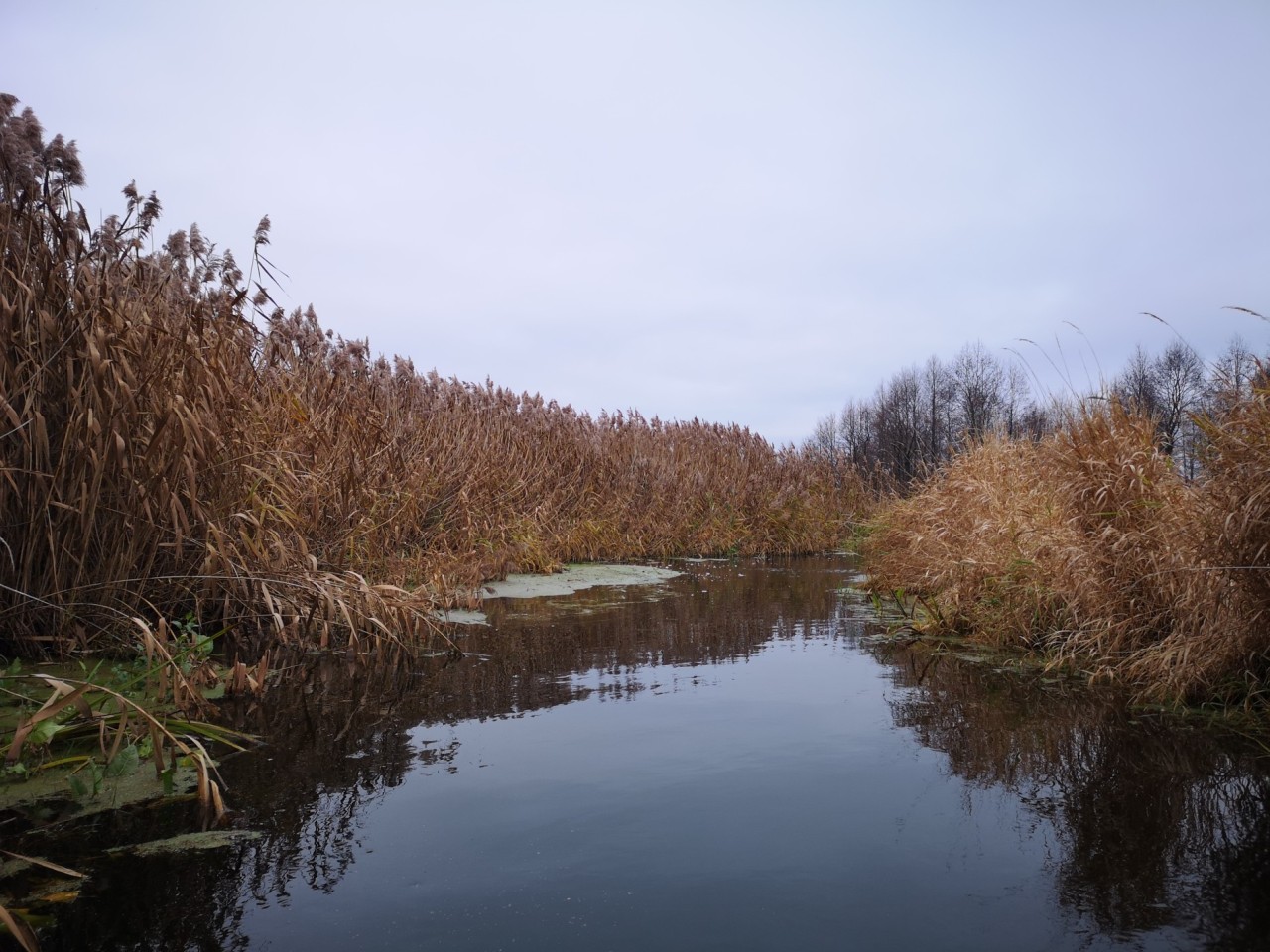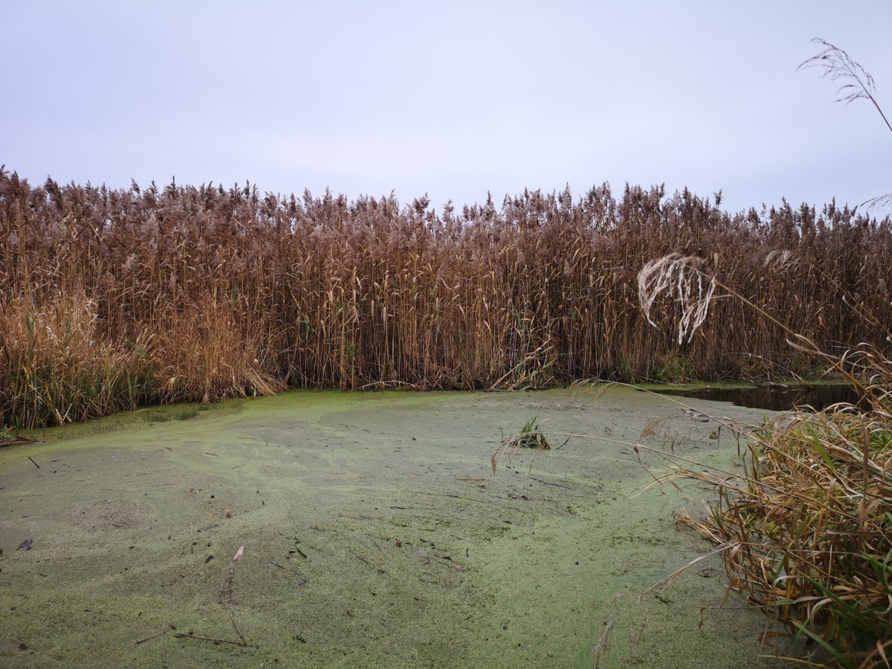 Ряска, мята, тростник, рогоз и пойменные деревья с облетевшими листьями. Всё "в одном флаконе"