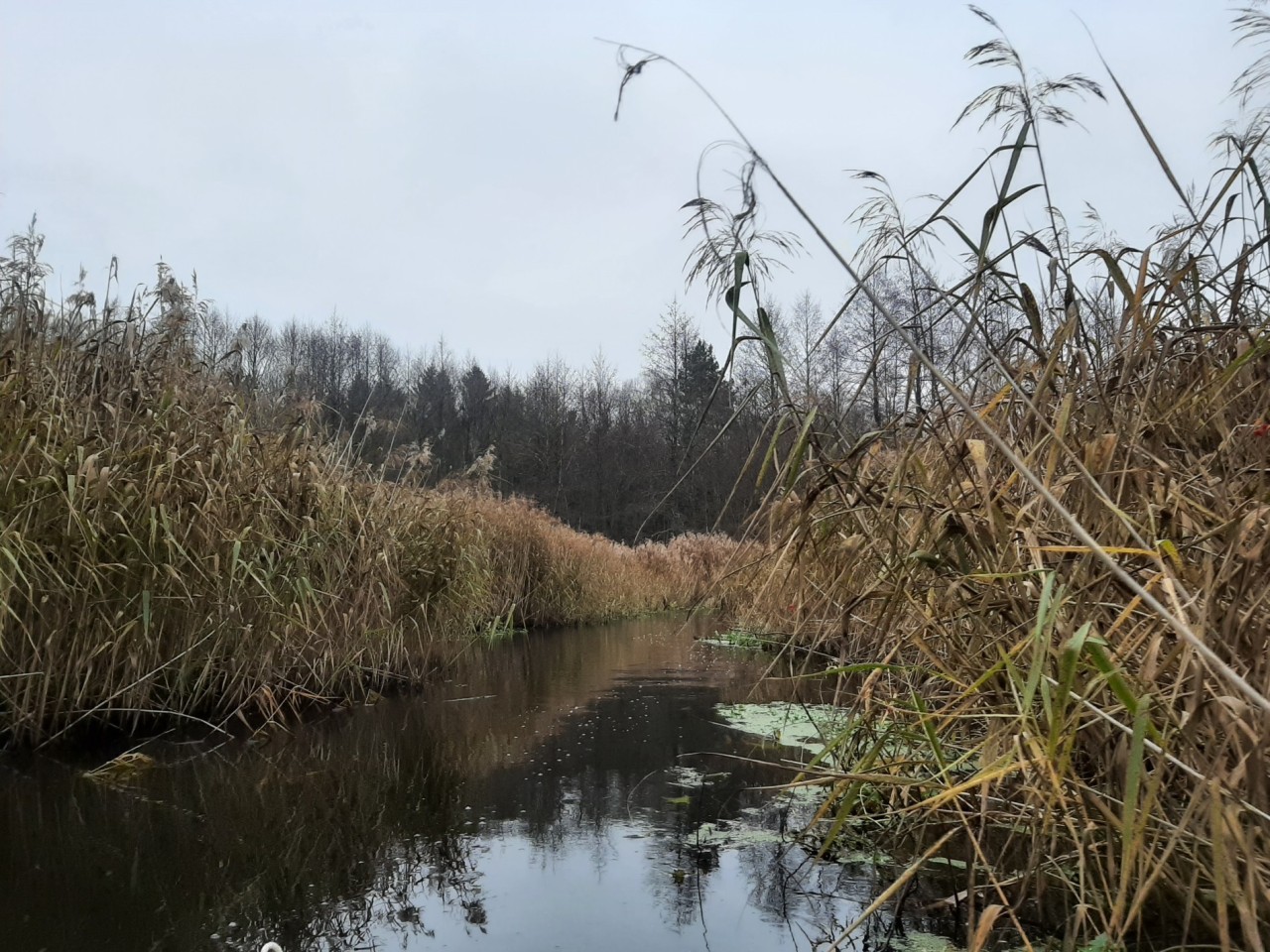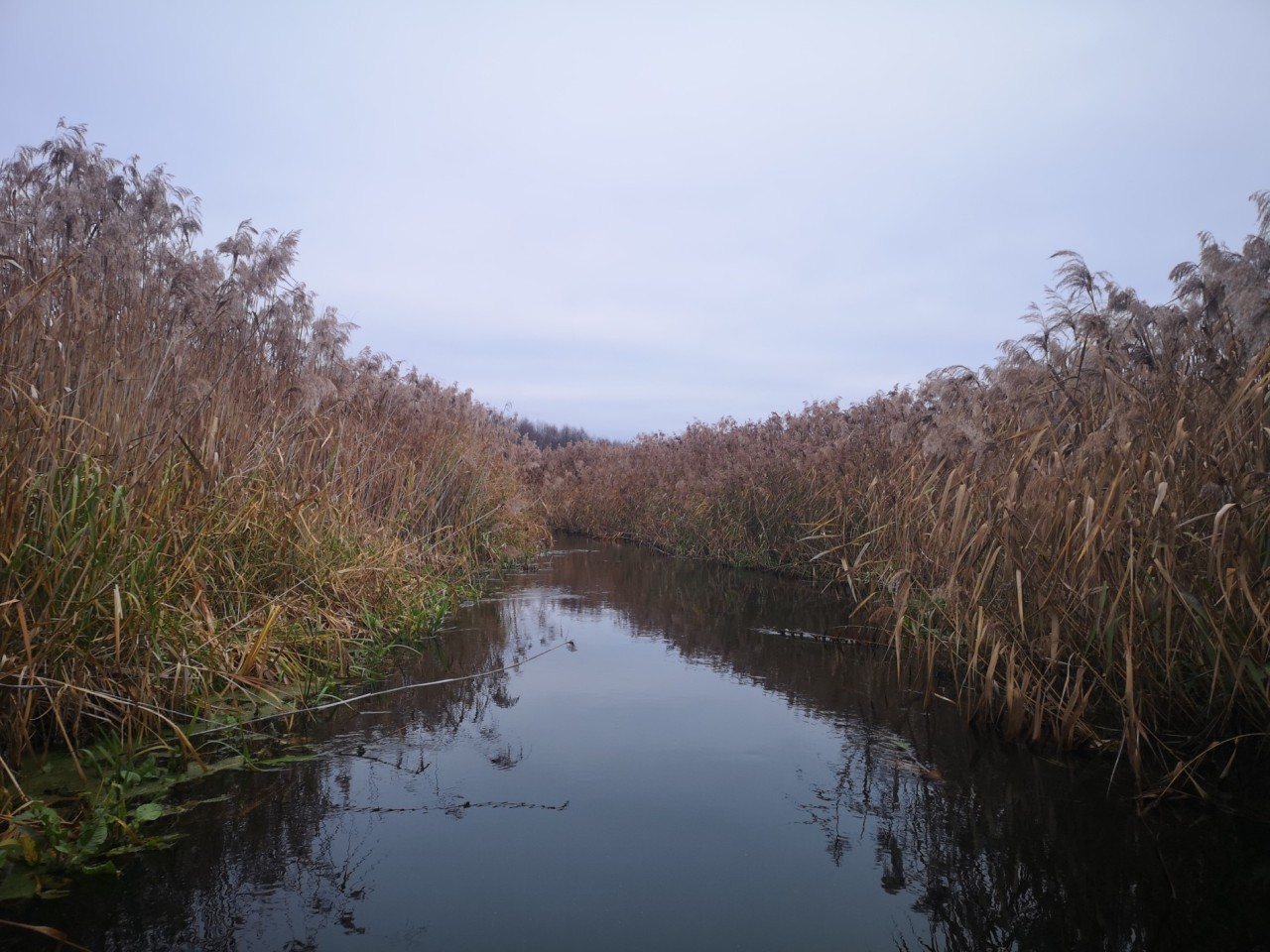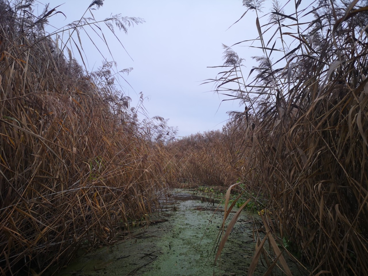 Ряска, мята, тростник, рогоз и пойменные деревья с облетевшими листьями. Всё "в одном флаконе"