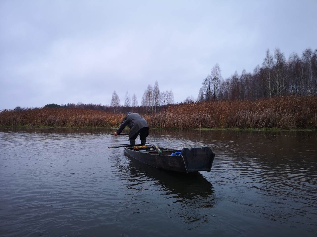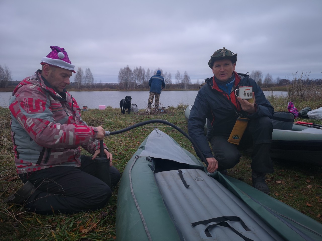 Костром и стряпней с вечера не занимались. Утром поднялись позднее запланированного. Лодки, разумеется, собирали тоже не с вечера, а поутру. Теперь были мы тут не одни. Еще приехали несколько рыбаков. Улов был скудный. Вроде как ноябрь время не для белой рыбы и поплавочной удочки с берега. Актуален больше хищник. С рыбаками бегал молодой короткошерстный и очень игривый лабрадор.