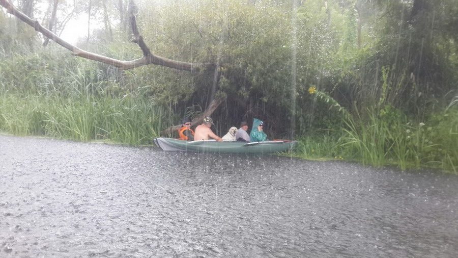 Не обошлось в этот день и без традиционного тропического ливня, но мы держались вместе и стойко перенесли временные трудности. Над Беседью раздавалось дружное: