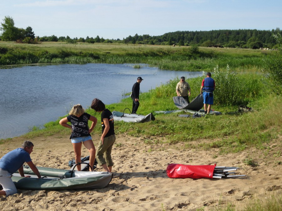 Приехали. Распаковались. Надули байдарки. Русиянов и Виталя Ким поехали в промежуточный лагерь в д. Хизы ставить вторую машину, а мы решили слегонца перекусить. Но тут оказалось, что почти у всех куча продуктов, которые портятся, и их просто необходимо срочно уничтожить. Девочки причитали: