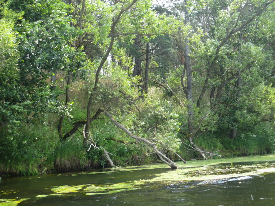 Зона отчуждения порадовала буйством природы: высокая, в рост человека сочная трава, усеянная цветастыми огоньками летних цветов, над которыми порхают бабочки и жужжат всякие мурашки. Над водой склонились разросшиеся ивы и часто встречались поваленные сосны. Естественные луга интенсивно зарастают молодой древесной порослью. И небо – пронзительно голубое, высокое, с уходящим ввысь солнцем. И ни единой живой души вокруг, только ветер и вода под тобой.