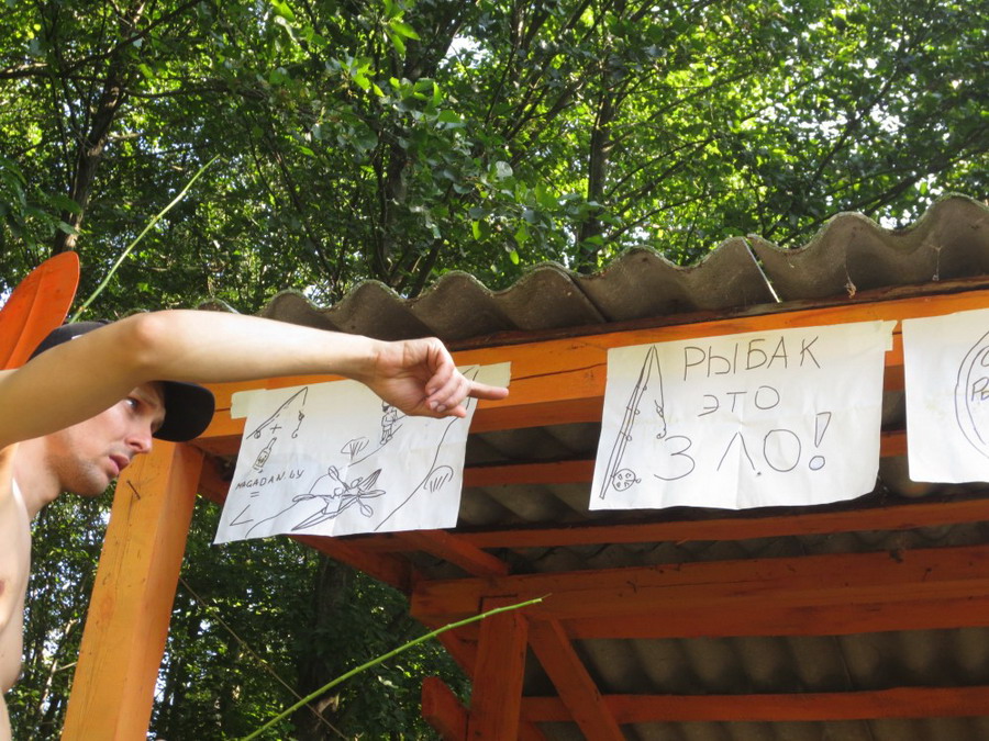 Виталя был настолько убедительным, что мы все твердо решили при появлении рыболова кричать ему: «Пошел на.уй!» или сразу бить веслом по голове, если он в доступности. А потом злорадно похихикали, представляя как рыбаки увидят наши агитационные плакаты (которые мы из вредности не сняли) и долго будут ломать головы: что же за секта такая, замышляющая против них плохое, появилась в их спокойных доселе краях?