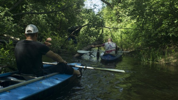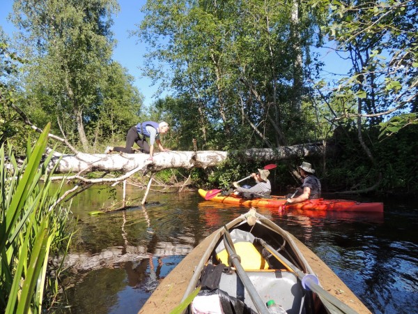 Порой, развалившиеся рядом несколько деревьев устраивали настоящий завал. Такое приходилось проходить лабиринтообразно маневрируя под ветками меж стволов. Здесь образовывались настоящие заторы из нескольких байдарок. Тогда Басков, Виталик, Саша вылезали из байдарок прямо в воду и одну за другой протаскивали лодки через завалы. Глубина была значительной. Несчастный почти двухметровый Басков, соскользнув с бревна, рухнул в воду едва не по плечи.
