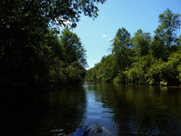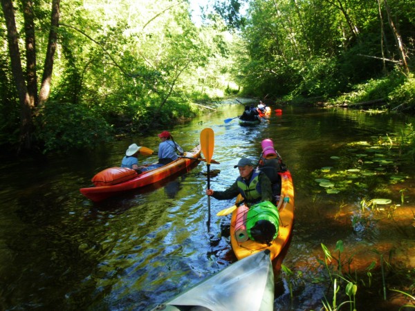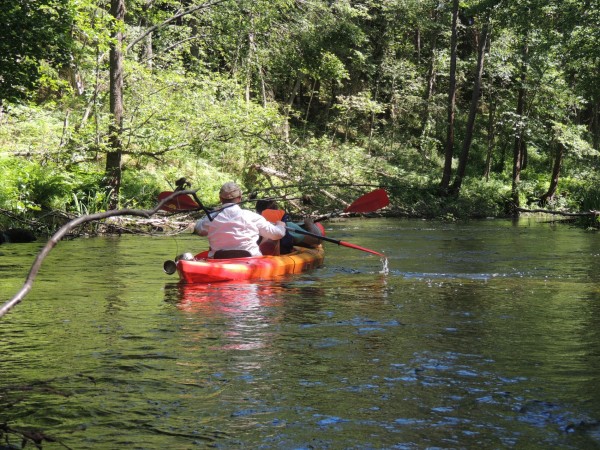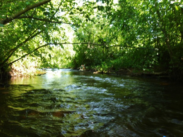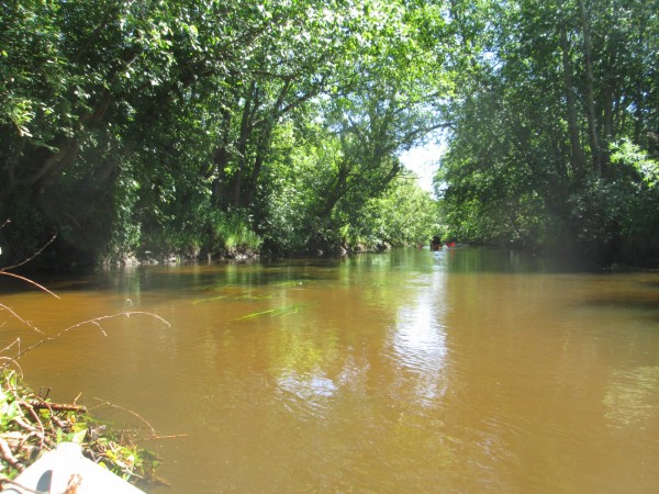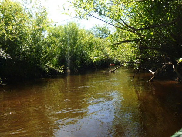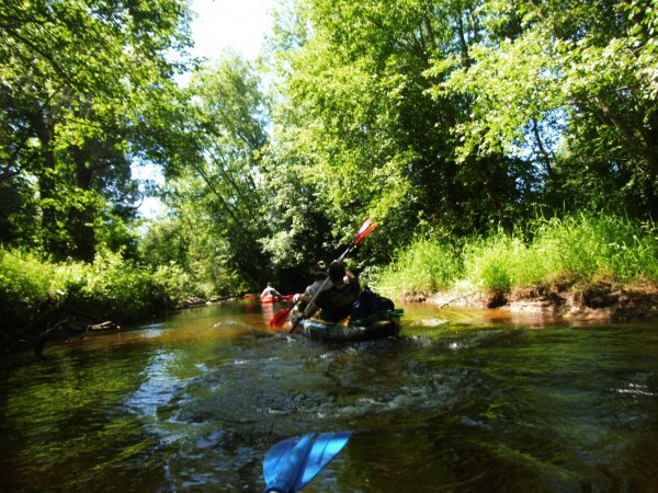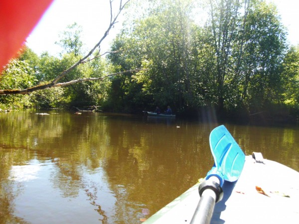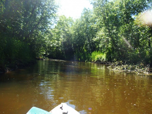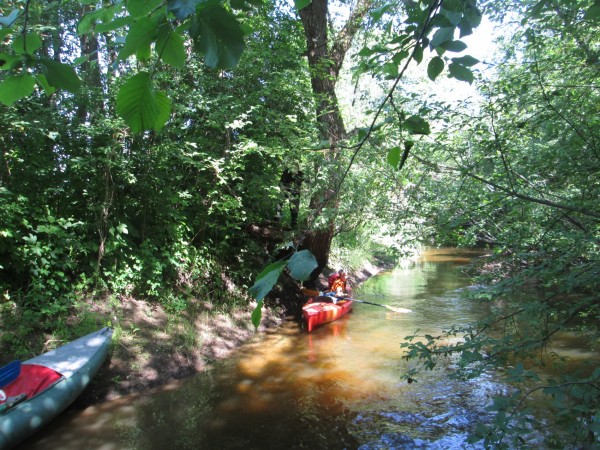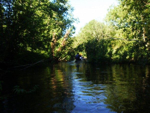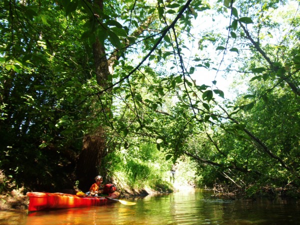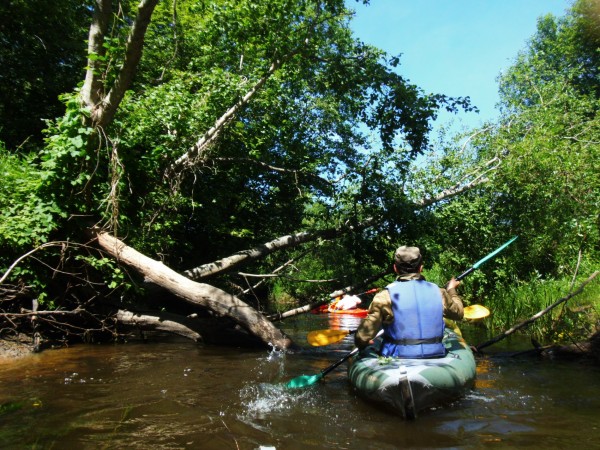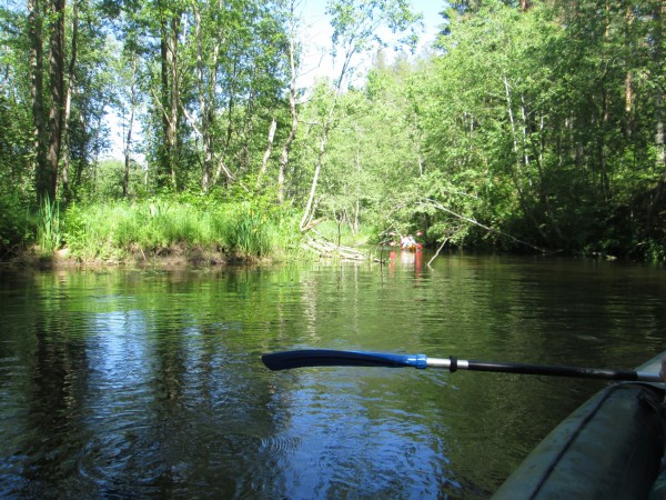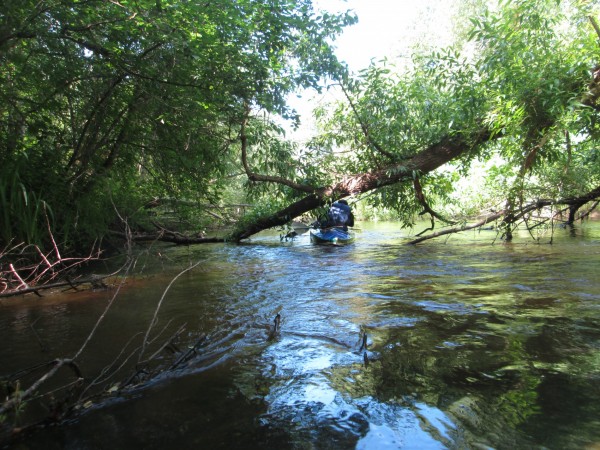 Сегодня на реке преобладали не завалы, как вчера, а скорее низко склонившиеся ветки с зелеными листиками замедляли скорость прохождения.