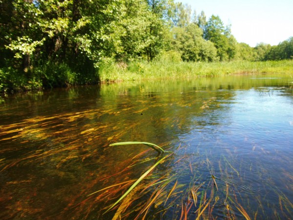 Не смотря на длительную засуху и даже объявление повышенной пожароопасности в лесах, воды в реке оказалось довольно много (следствие дождливой осени и довольно богатой на осадки весны). Вода в Оболе сравнительно с реками Беларуси прозрачности исключительной! Обильно зарастающая водными растениями. Столь же прозрачная вода ранее руководителем наблюдалась разве что на плесах Кольского Полуострова.