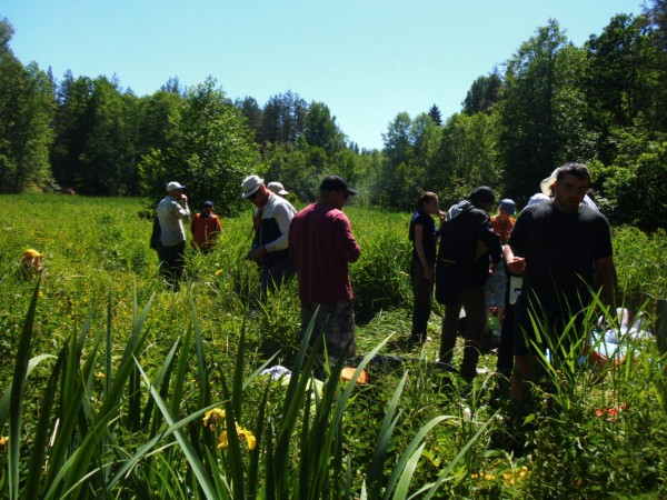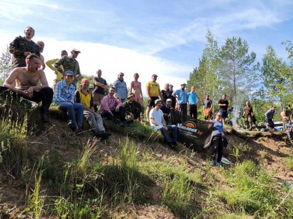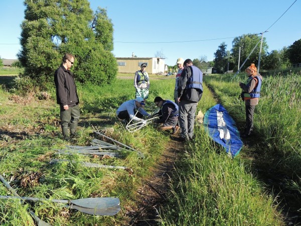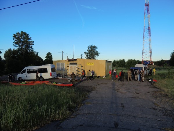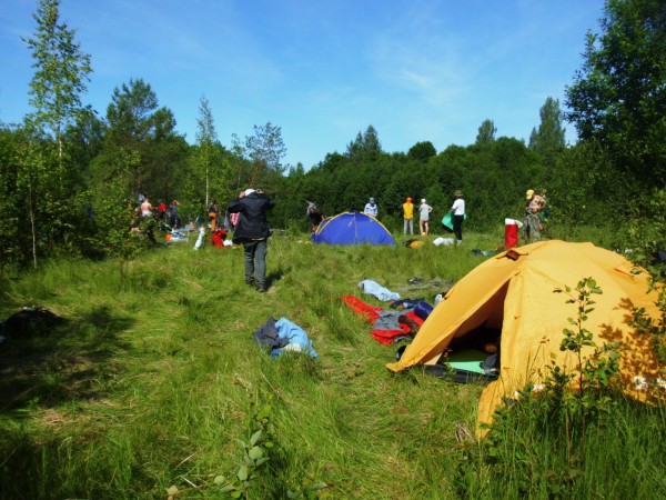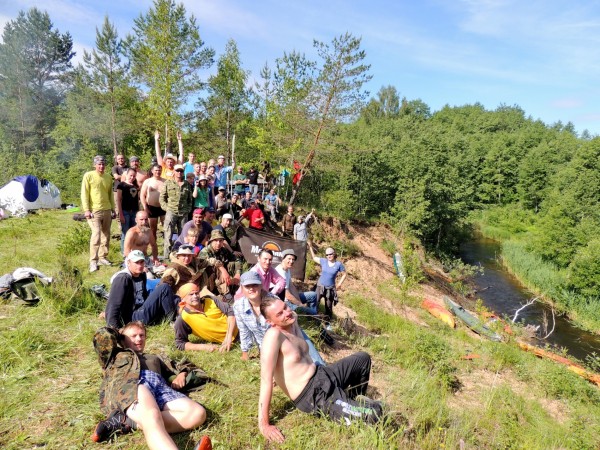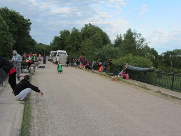 47 людей кучковато заполнили правый берег Оболи. Собирались «Таймени», надувались «Хатанги», укладывались вещи в пластиковые байды. Кто-то пил «за встречу», кто-то «за знакомство», кто-то завтракал бутербродами. Одни стояли у воды наизготовку, другие лишь раскладывали многочисленные детали «Тайменей».