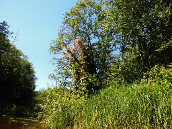 Пока река была однообразной, не заставляла отвлекаться не маневры. Я находилась в состоянии полного душевного покоя и какой-то внутренней тишины. На берегу кучей веток, казавшейся беспорядочной, серела бобровая хатка.