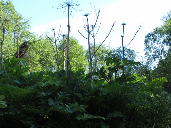 Вода шустро бежала поверх и меж проглядывающих из воды камней, весело журчала. Камни царапали дно байдарки. А иногда настоящие валуны встречались на пути. Река стала просторнее, аккуратнее, по берегам компактно круглели молоденькие ивы, зотнообразно высился борщевик Сосновского.