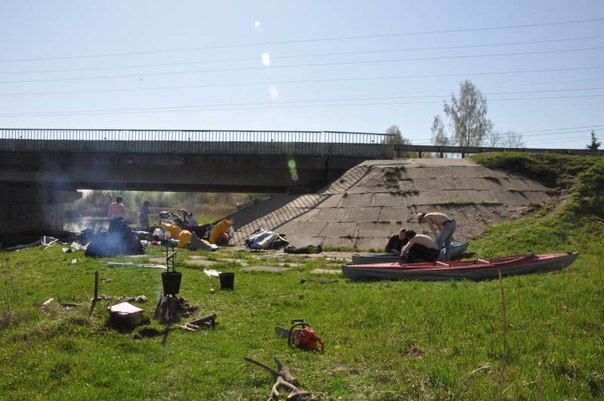 Итак, добравшись до первого моста над рекой часам к 9-00, решили не испытывать на прочность представителей рыбоохранной службы города Рославль и выбрали место стапеля прямо под мостом.