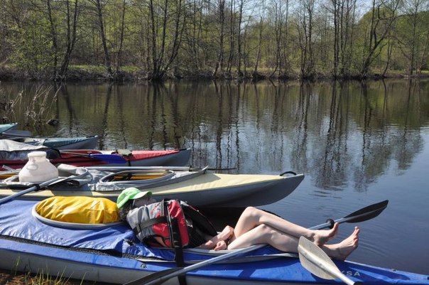 С такими событиями закончился второй ходовой день. Вот ещё: день этот запомнился тем, как тусили в хвосте эскадры экипажи трех байдарок: Кости, Саши Дёмкина и наш. Мы славно и неспеша вкушали роскошь общения, соединяя байды в плот.