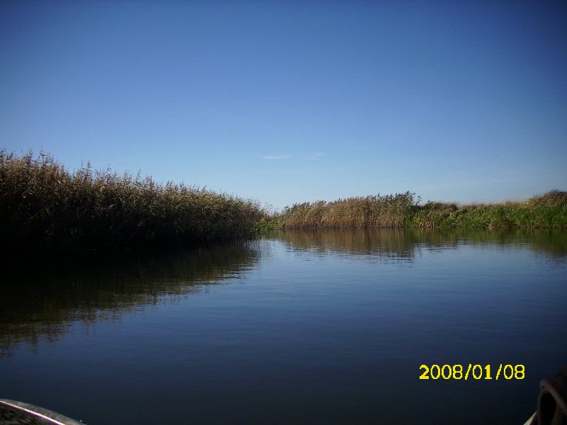Пейзаж сильно не изменился. Сплошной камыш с обеих сторон. Плюс река постоянно петляла, что для нашей команды было достаточно напряжным. Увидев в направлении движения лес, мы приходили в восторг, но не тут-то было, река поворачивала, куда не надо, отступала и вела нас опять к камышу. Шурик возмущался панораме, как в том анекдоте, пришли послушать Райкина, а с докладом выступает сам Дорогой Леонид Ильич.  Распевали песни, распивали напитки, периодически абсолютно без нужды полностью останавливались. Еще считалось достаточно прикольным зарываться в камыш.