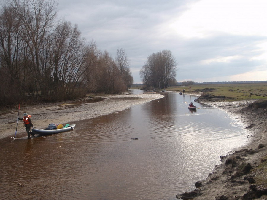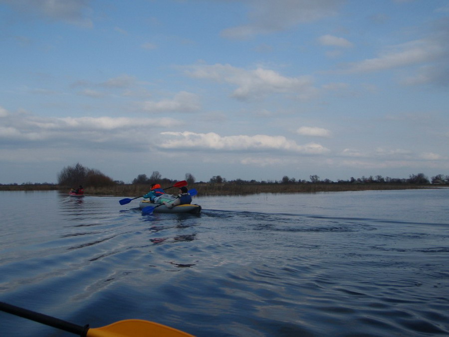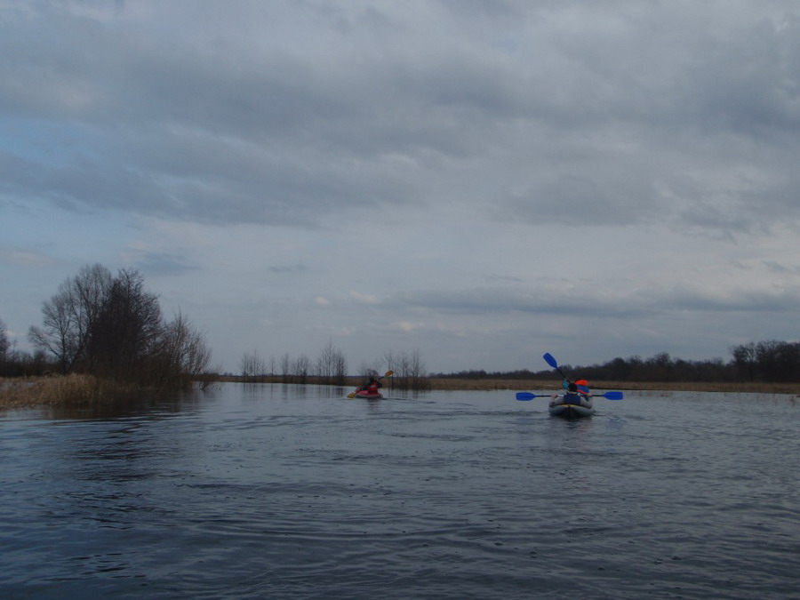 Течение Горыни радовало, но сильный ветер в лицо ощутимо замедлял наш ход! Волны бились в борта и заливались в байдарки, для магадановцев такие неудобства – это мелочь! Мы словно глиссировали.
