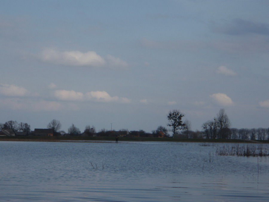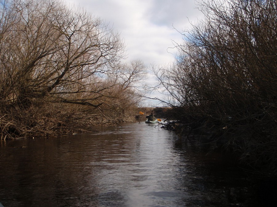 По Лисовой речке было ехать уютно среди затопленных лиственных деревьев, она на северо-запад будто продолжала Льву. Мы вышли наконец на обширные луговые просторы. Путь реки преграждала дамба, по которой ехал дришпель.