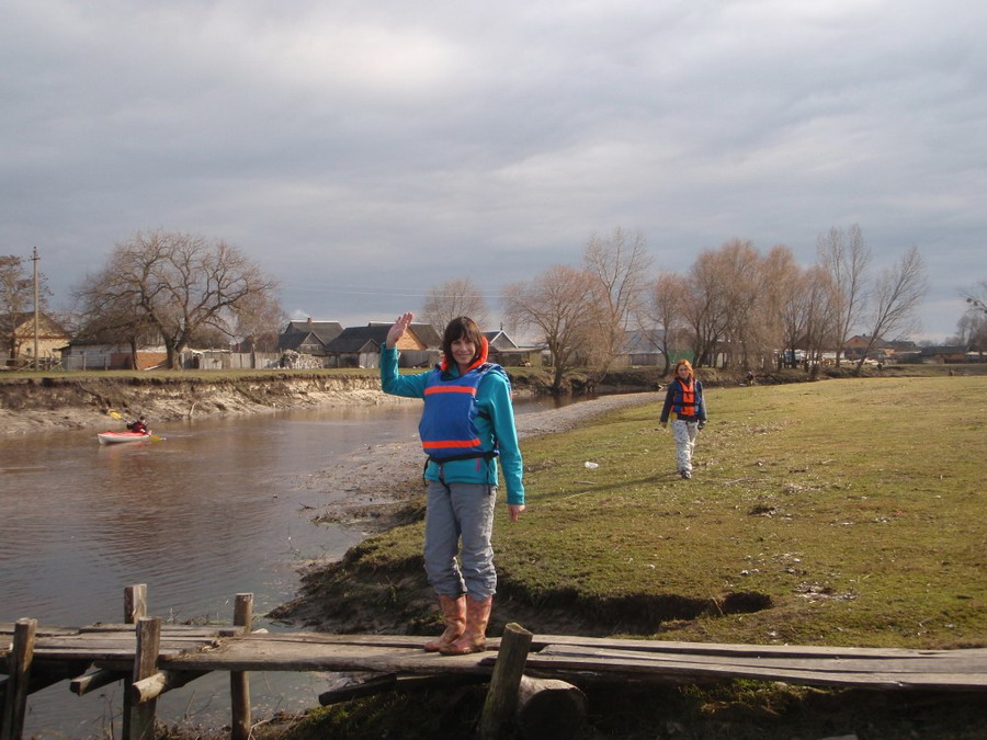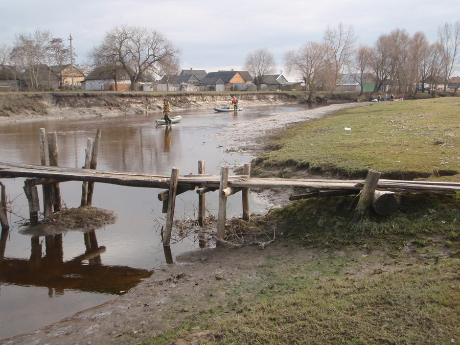 Наконец наша группа дошла до широкого полноводного плеса, где можно прыгать в байдарки и ехать дальше. Он под прямыми углами вправо и влево поворачивал к дворам деревни Рубель. По берегу бегали местные ребятишки и приветствовали нас радостными криками с просьбой прокатить. Стас Литвинович (друг Глаза из Конкурентов-партнеров) – добрая душа подобрал двух пацанят, и те не веря в свалившееся счастье, гордо поглядывали на печальные лица оставшихся на берегу остальных мальчишек. Но грустили они не долго, остальные байдарки начали забирать желающих.
